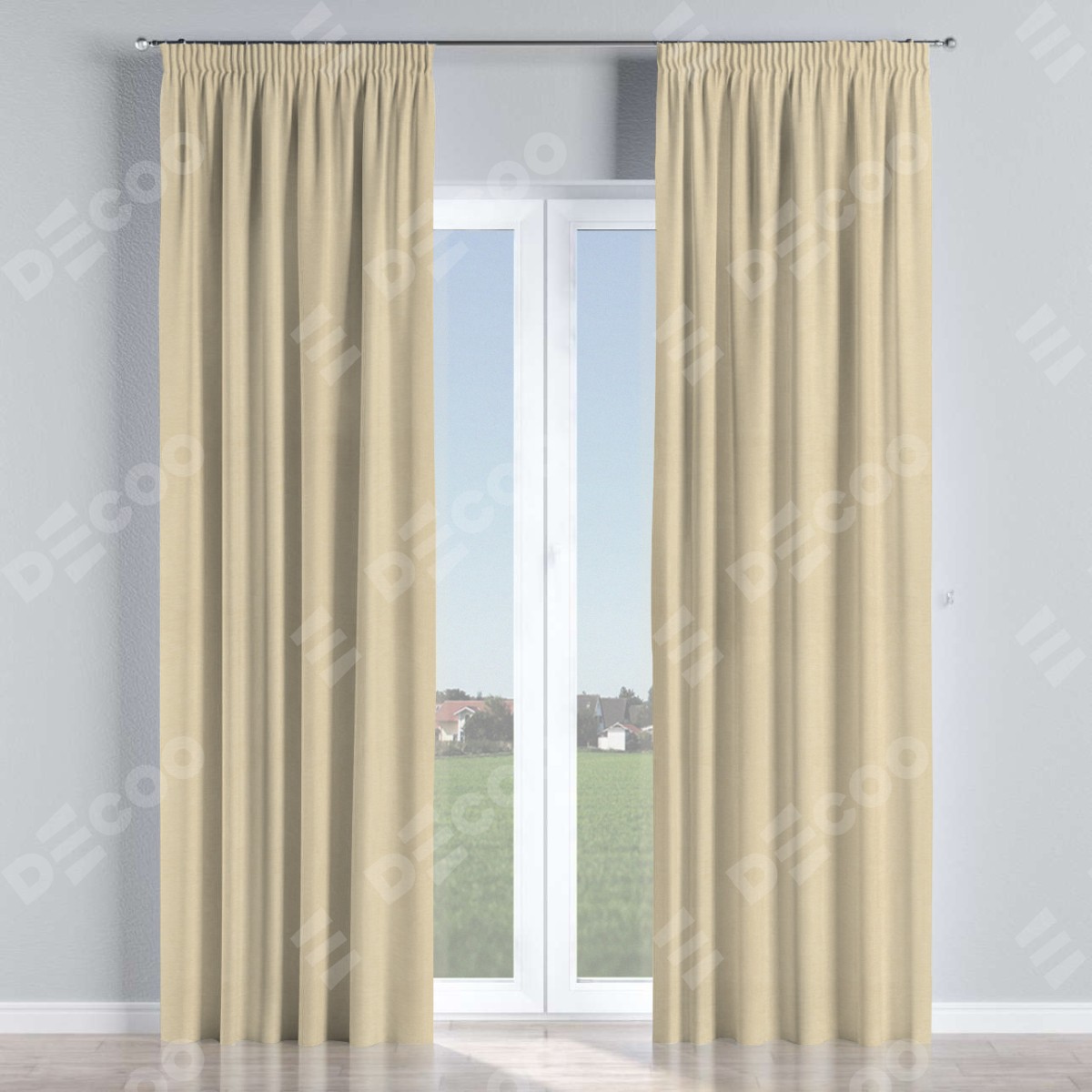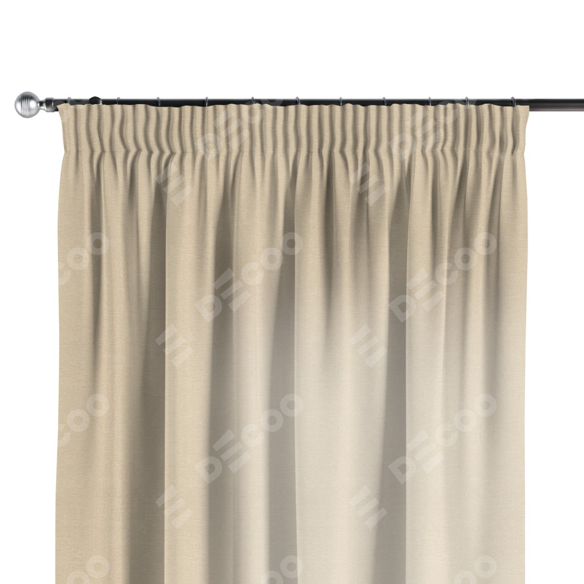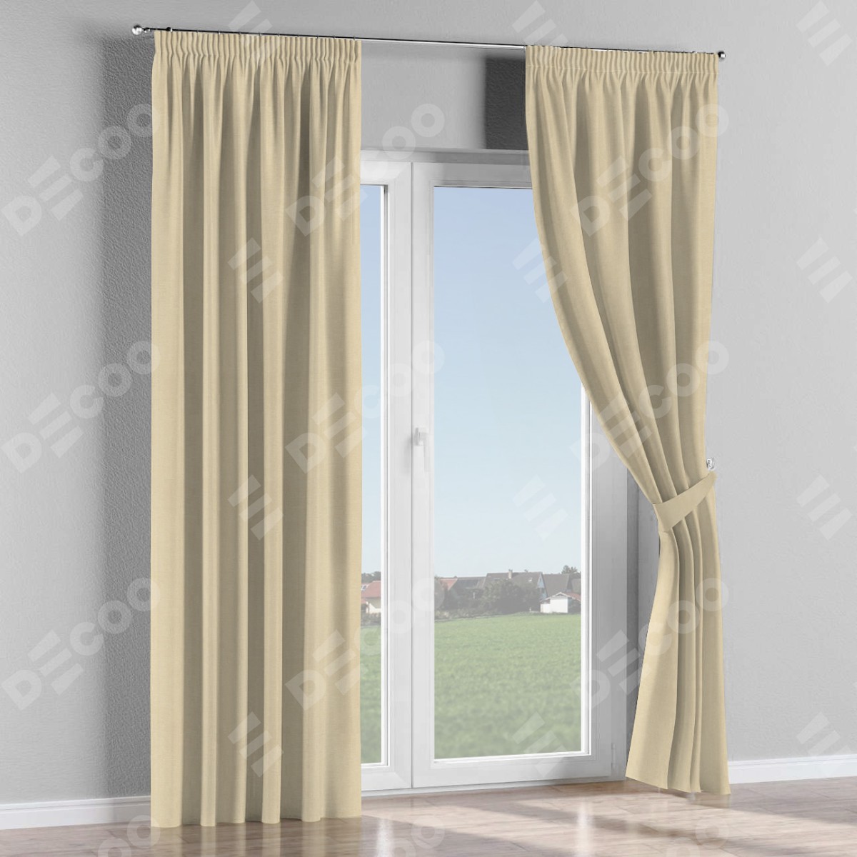 Комплект прямых штор, от производителя «Cortin», пошиты из ткани софт однотонный бежевый лайт, артикул ткани 33100. С изнаночной стороны в верхней части штор пристрачивается шторная лента с декоративными складками «Карандаш». Для создания элегантных складок прямые шторы шьются по стандарту с коэффициентом 1:2 (на 100 см. ширины проёма 200 см. ширины ткани).