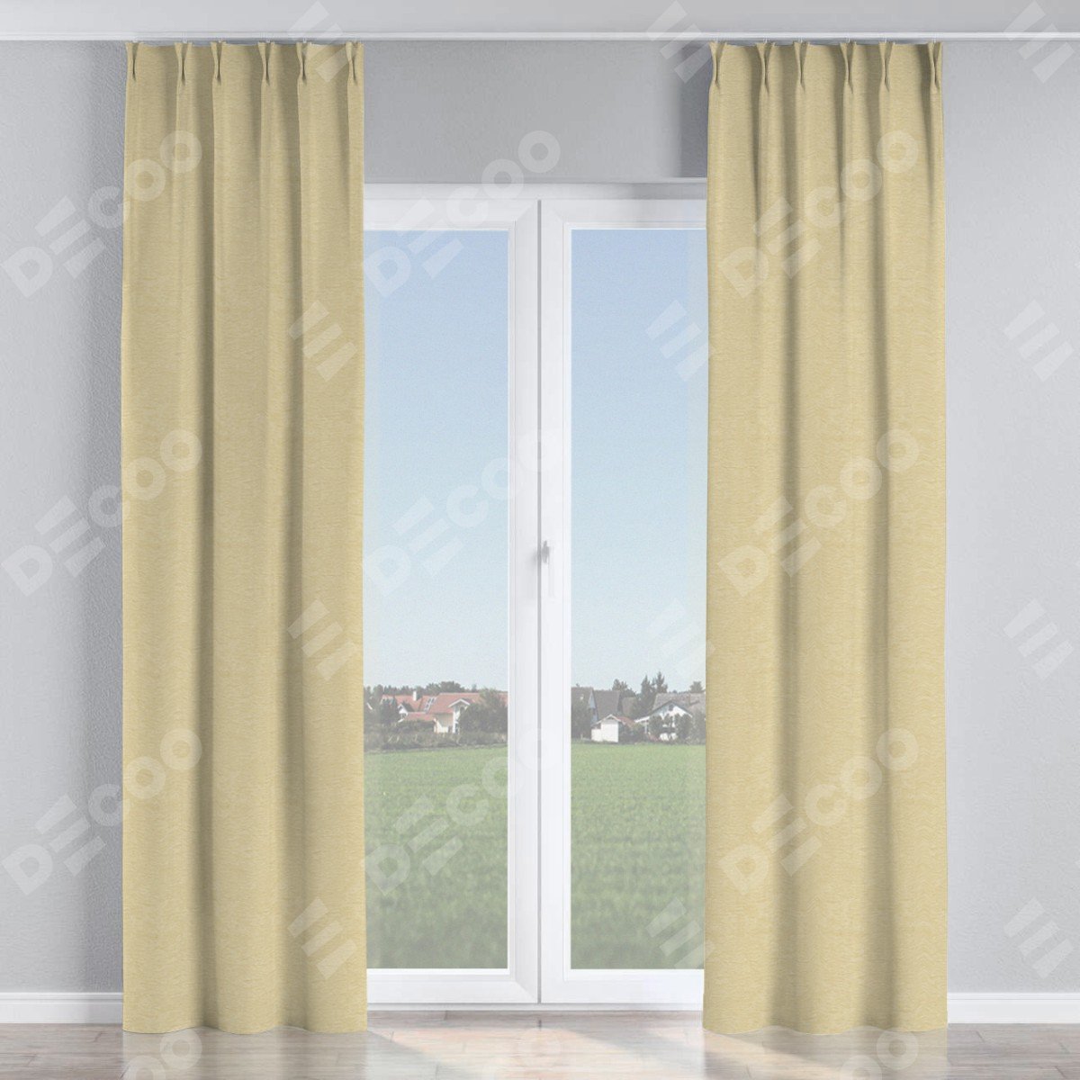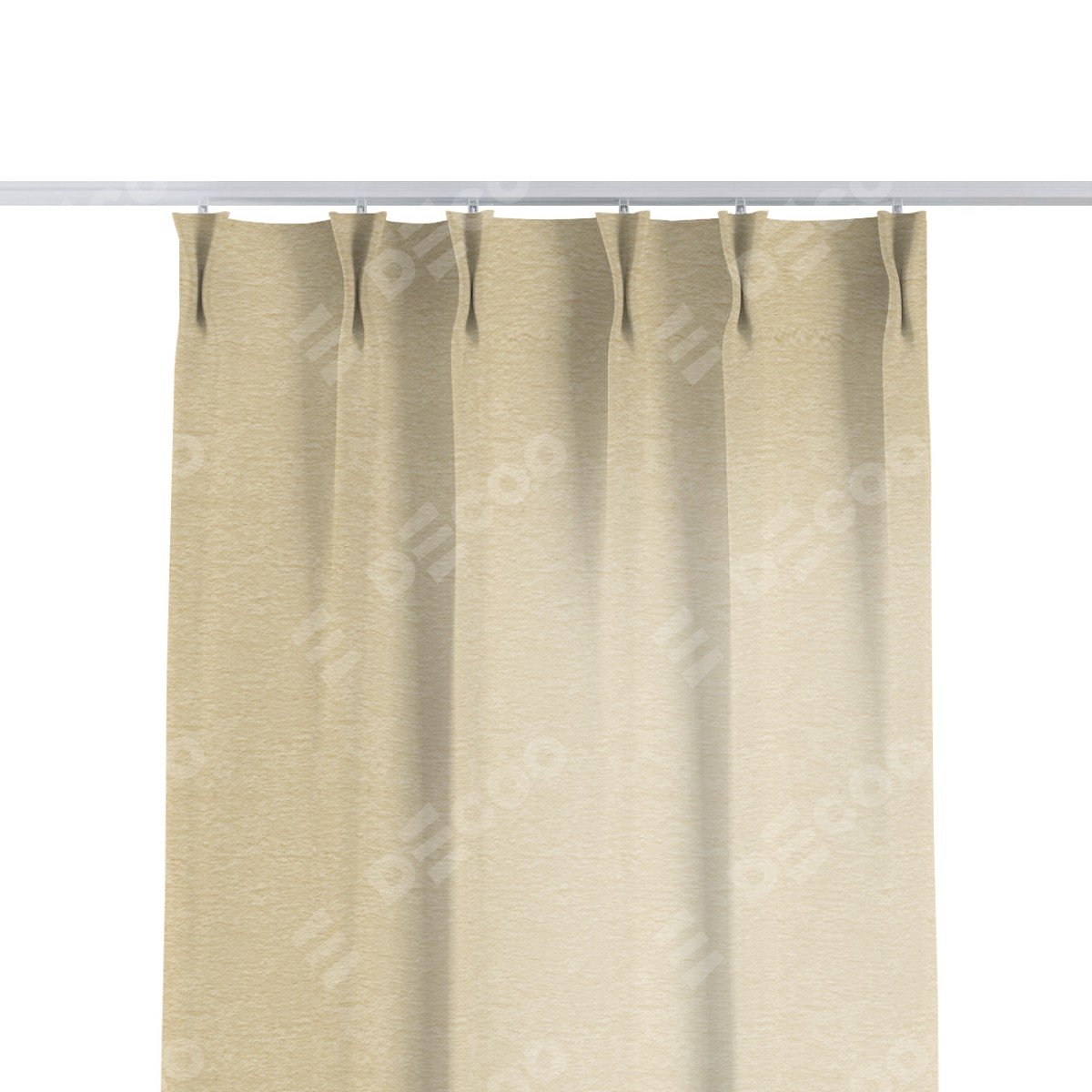Комплект прямых штор, от производителя «Cortin», пошиты из ткани софт однотонный светло-бежевый, артикул ткани 54426. С изнаночной стороны в верхней части штор пристрачивается шторная лента с декоративными складками «Кустик». Для создания элегантных складок прямые шторы шьются по стандарту с коэффициентом 1:2 (на 100 см. ширины проёма 200 см. ширины ткани).