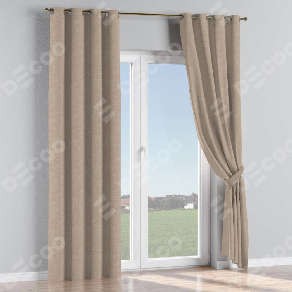 Комплект прямых штор, от производителя «Cortin», пошиты из ткани софт однотонный тёмно-бежевый, артикул ткани 1640. Данная модель пошита на люверсах, комплектуется на выбор круглым карнизом и подходит для монтажа на стену или потолок. Прямые шторы на люверсах шьются по стандарту с коэффициентом 1/2 (на 100 см. ширины проёма 200 см. ширины ткани), отличительным преимуществом данной модели является простой способ монтажа. Достаточно повесить ее на трубу и штора готова!