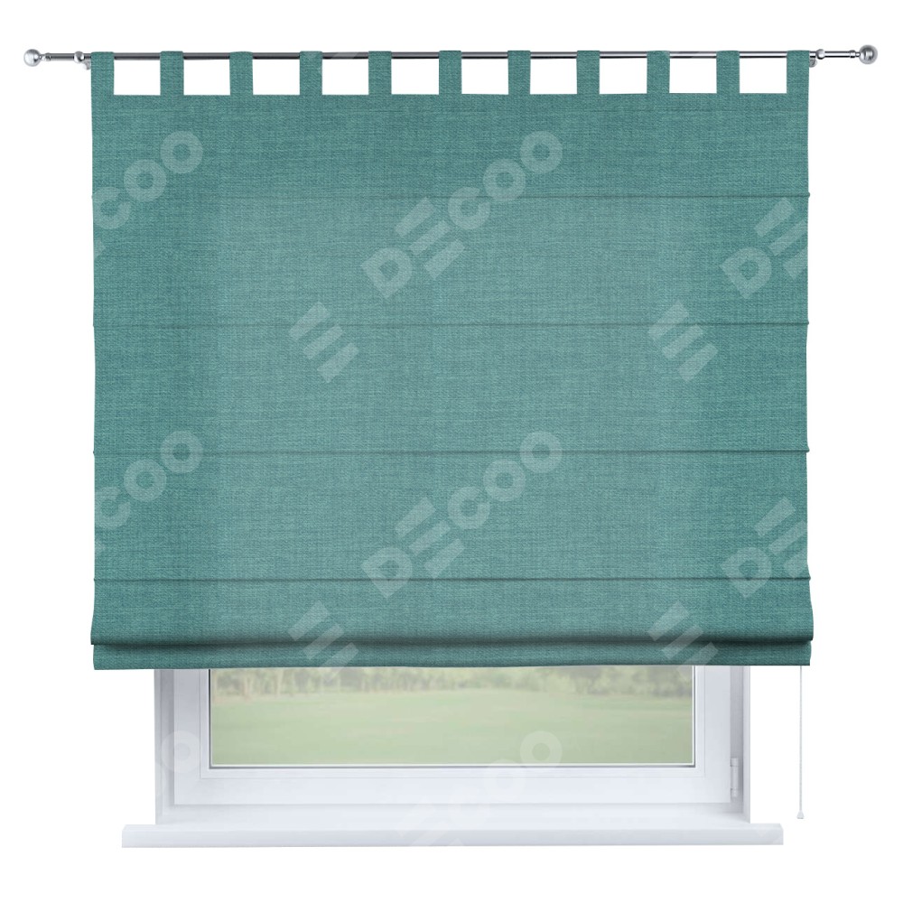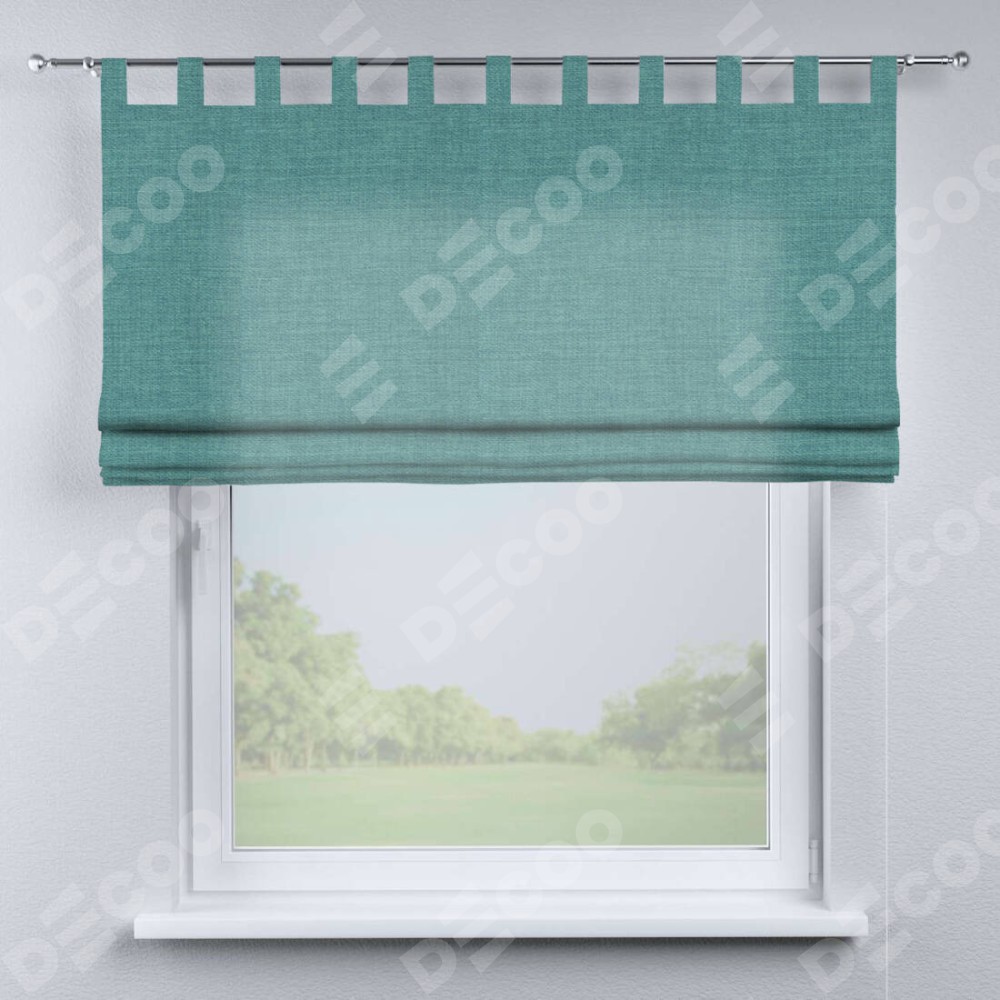 Римская штора на петлях «Кортин», ткань лён бирюза