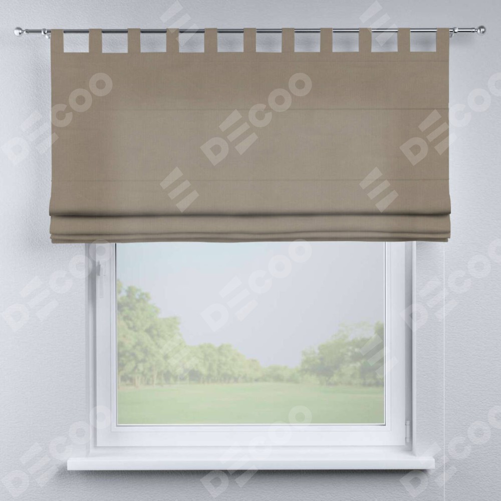 Римская штора производителя «Cortin», используется для проёма, пошита из ткани вельвет кофейный, артикул ткани 30980. Данная модель пошита на петлях, комплектуется на выбор круглым карнизом и подходит для монтажа на стену. Римская штора на петлях имеет простую систему регулировки высоты, отличительным преимуществом данной модели является простой способ монтажа. Достаточно повесить ее на трубу и штора готова!