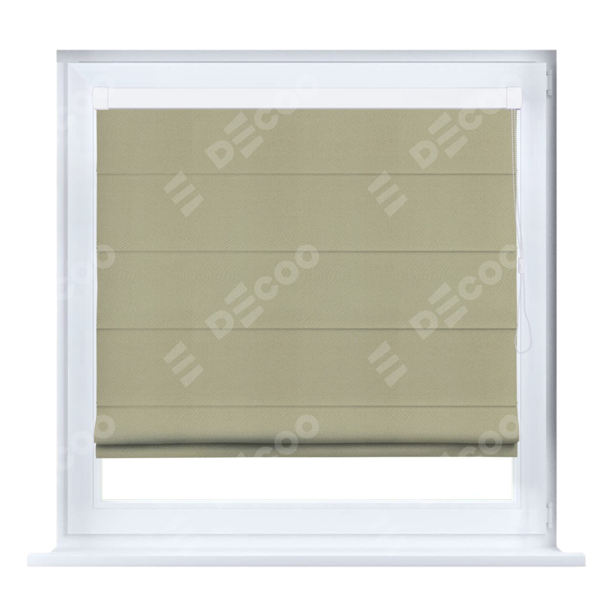 Римская штора кассетного типа, производителя «Cortin», устанавливается только на пластиковые окна и прилегает к стеклопакету, пошита из ткани блэкаут однотонный милано капучино, артикул 06.