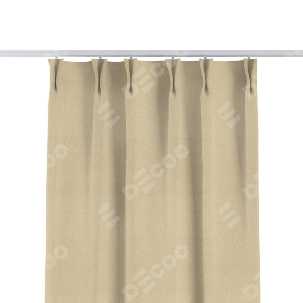 Комплект прямых штор, от производителя «Cortin», пошиты из ткани блэкаут однотонный милано латте, артикул ткани 05. С изнаночной стороны в верхней части штор пристрачивается шторная лента с декоративными складками «Кустик». Для создания элегантных складок прямые шторы шьются по стандарту с коэффициентом 1:2 (на 100 см. ширины проёма 200 см. ширины ткани).