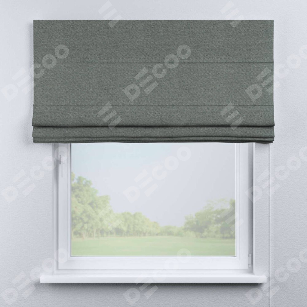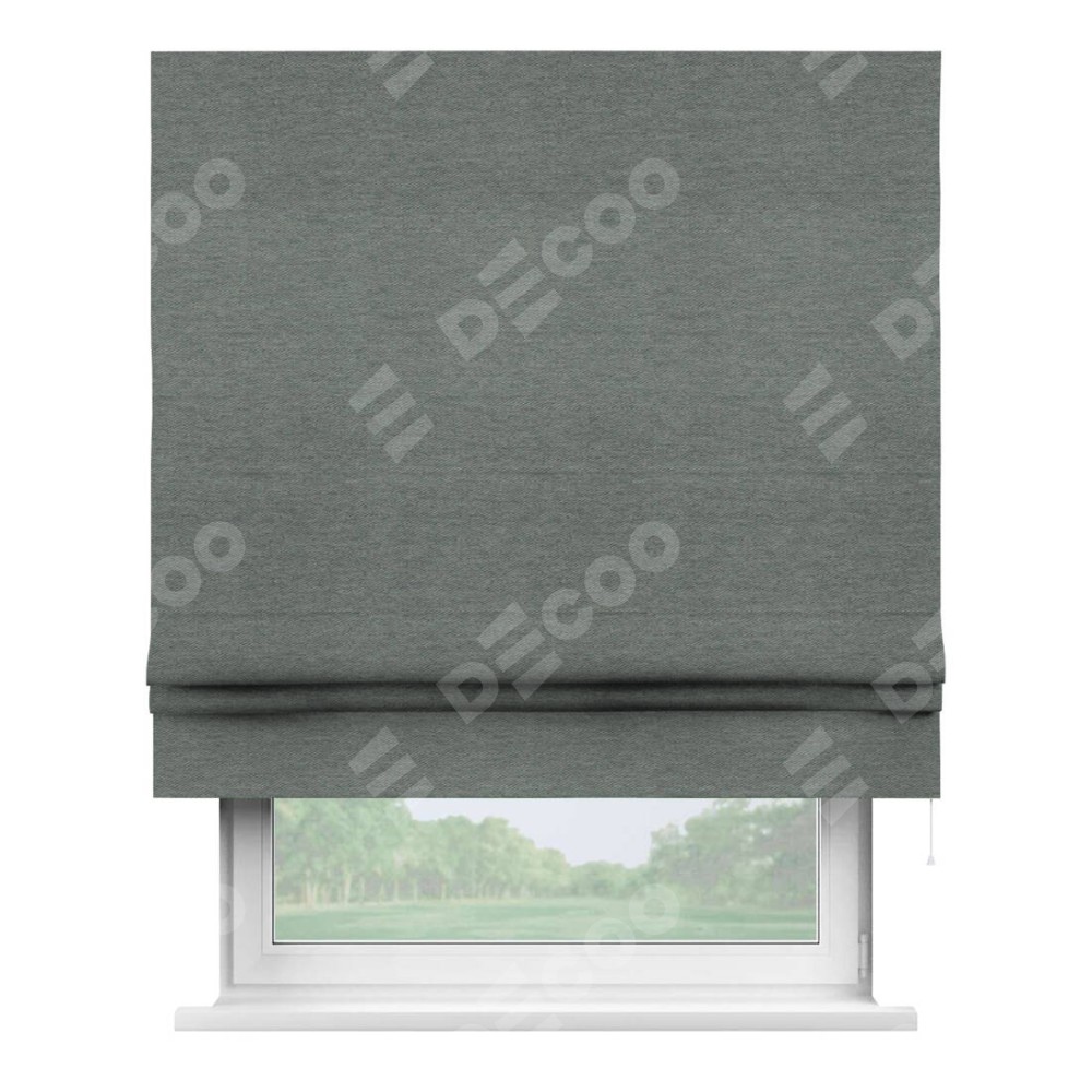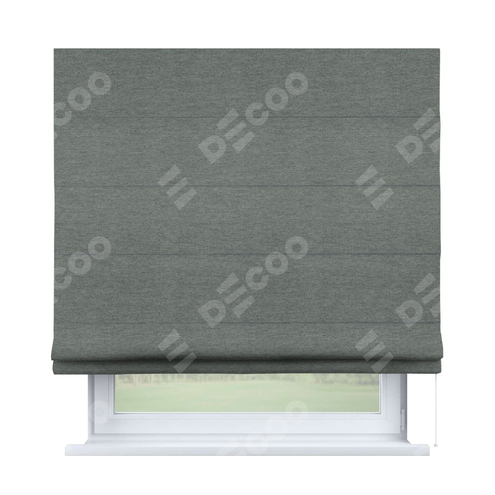 Римская штора производителя «Cortin», используется для проёма, пошита из ткани твид блэкаут серый, артикул ткани 21577. Имеет универсальный механизм и подходит для монтажа: на потолок, на стену и в нишу.