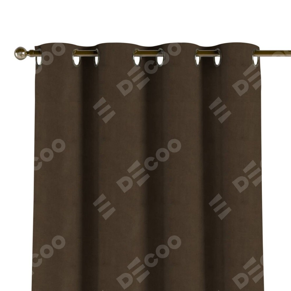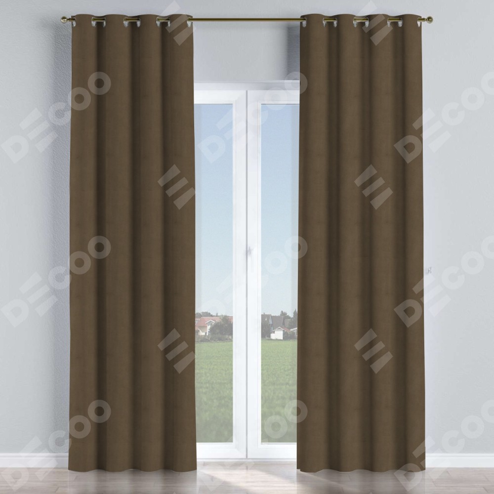 Комплект прямых штор, от производителя «Cortin», пошиты из ткани бархат тёмно-коричневый, артикул ткани 5017. Данная модель пошита на люверсах, комплектуется на выбор круглым карнизом и подходит для монтажа на стену или потолок. Прямые шторы на люверсах шьются по стандарту с коэффициентом 1/2 (на 100 см. ширины проёма 200 см. ширины ткани), отличительным преимуществом данной модели является простой способ монтажа. Достаточно повесить ее на трубу и штора готова!