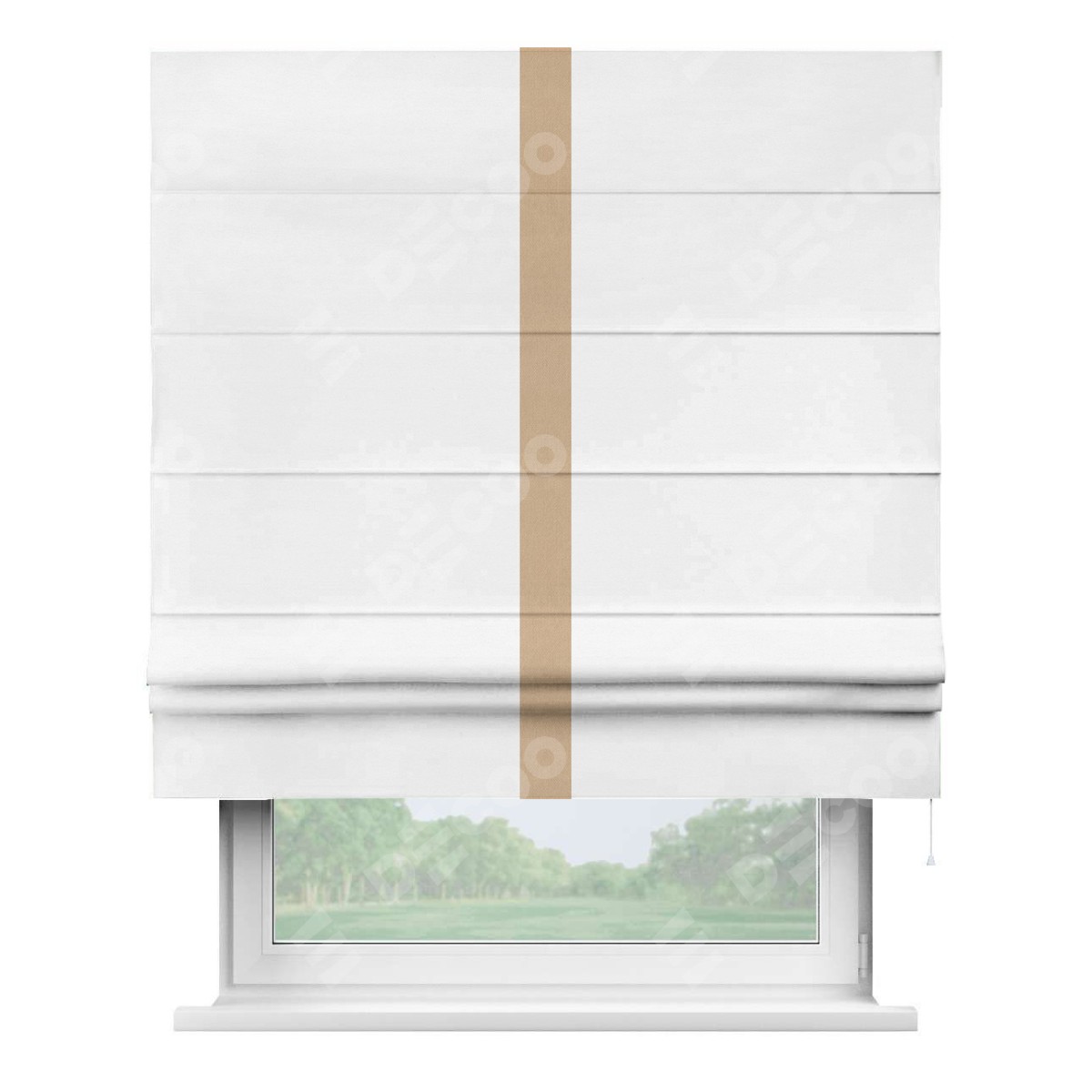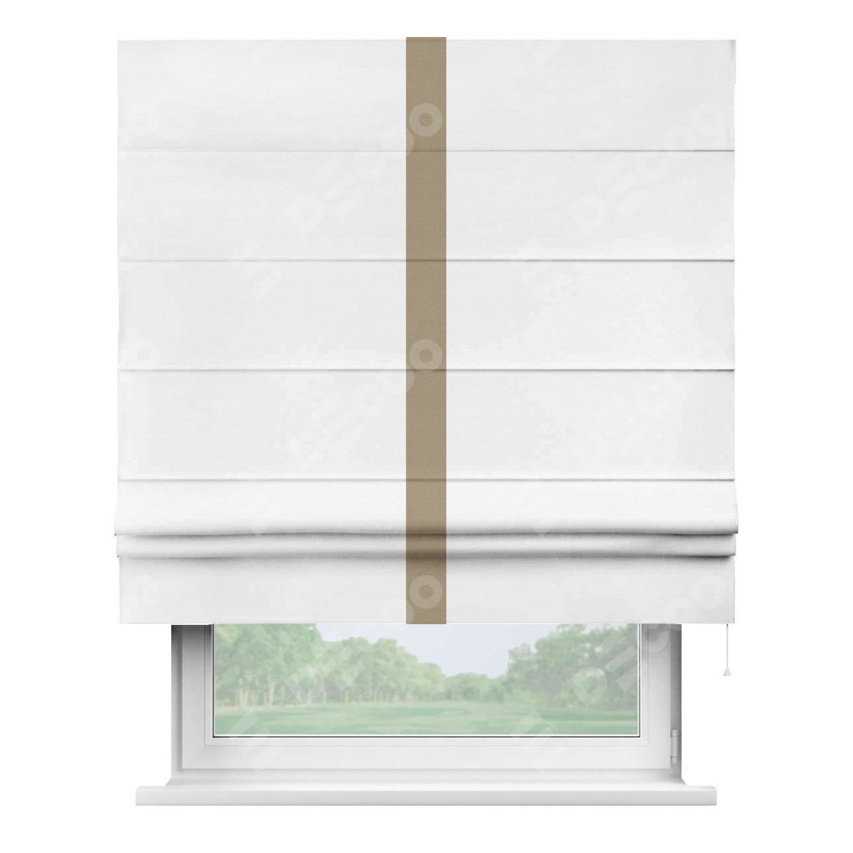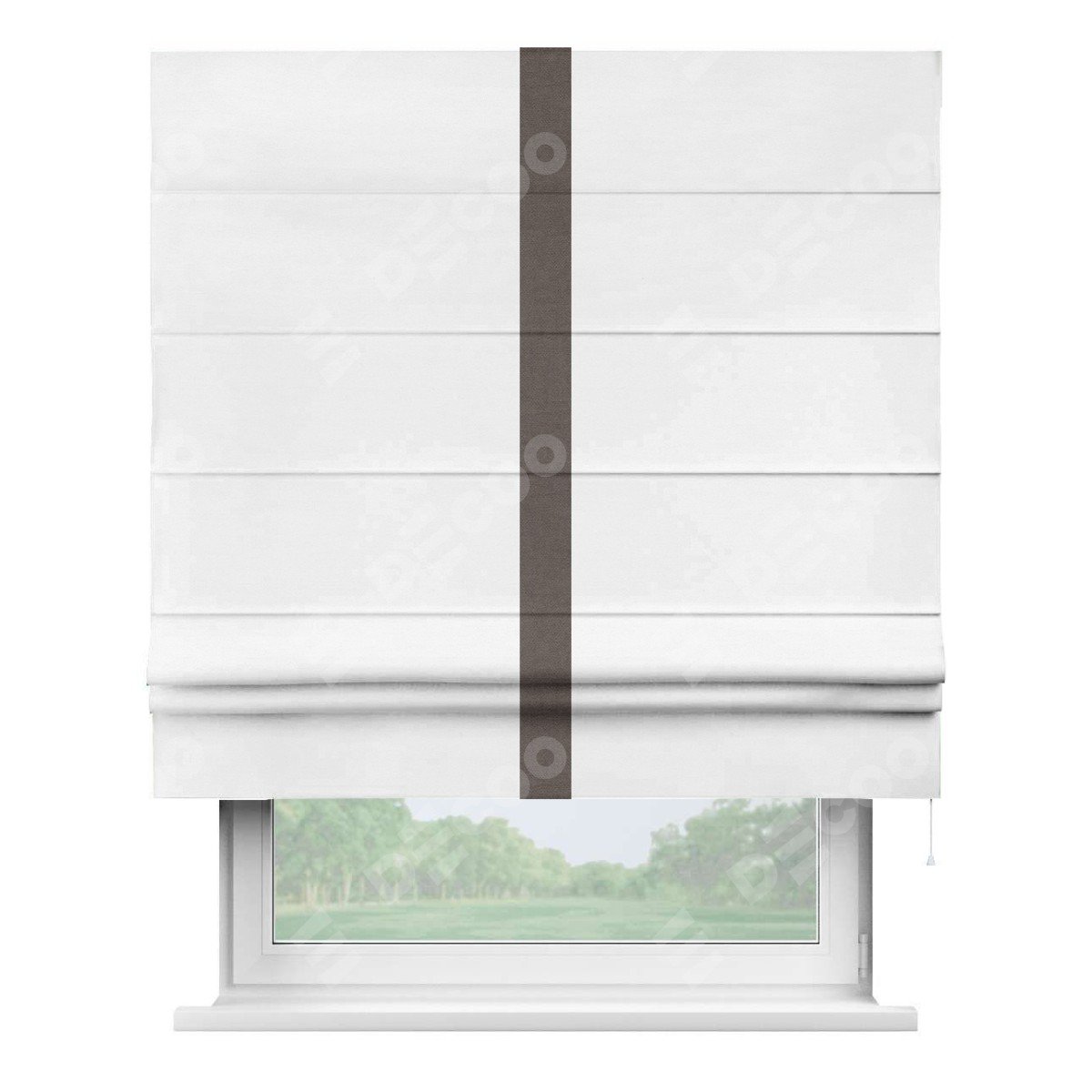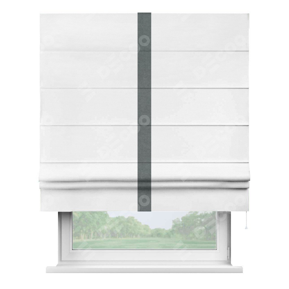 Римская штора производителя «Cortin», используется для проёма, пошита из ткани вельвет дымчато-белый, артикул ткани 85535. Отделка шторы кантом «Хайвей», ткань для канта используется из вельвета разной расцветки на выбор. Имеет универсальный механизм и подходит для монтажа: на потолок, на стену и в нишу.