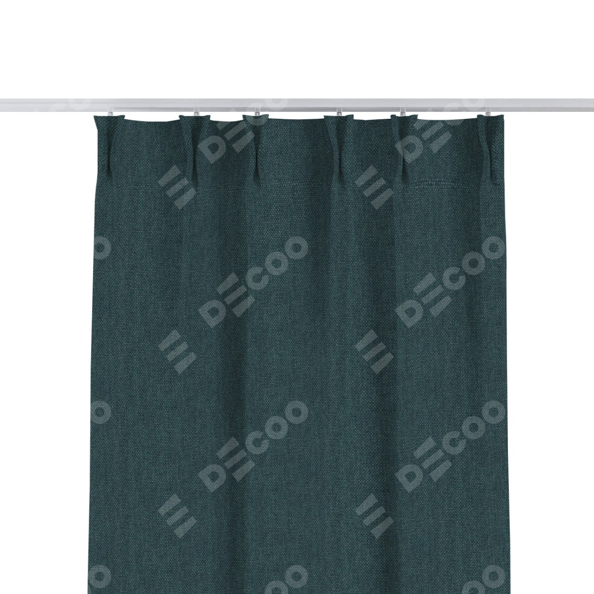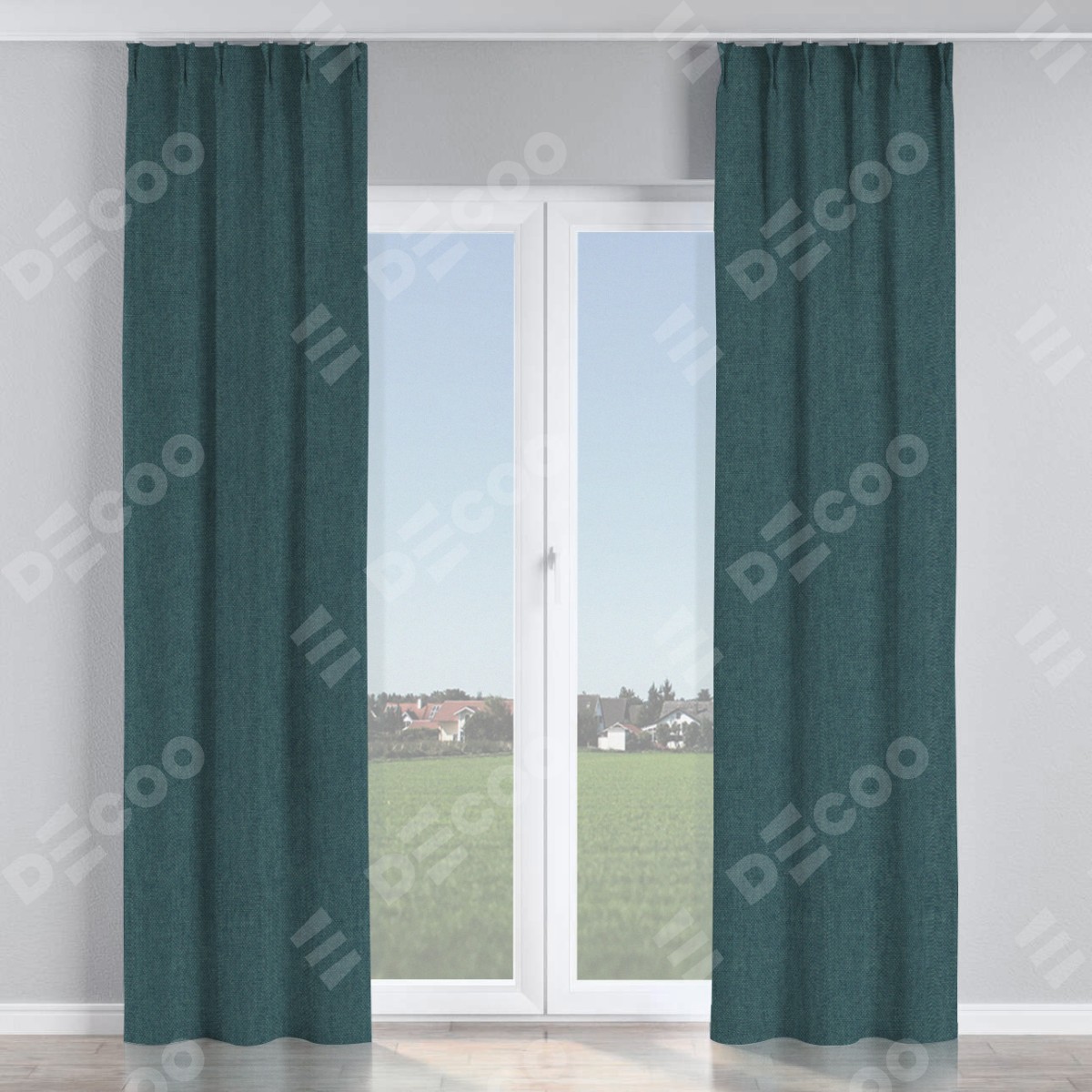 Комплект прямых штор, от производителя «Cortin», пошиты из ткани лён димаут серо-синий, артикул ткани 03238. С изнаночной стороны в верхней части штор пристрачивается шторная лента с декоративными складками «Кустик». Для создания элегантных складок прямые шторы шьются по стандарту с коэффициентом 1:2 (на 100 см. ширины проёма 200 см. ширины ткани).