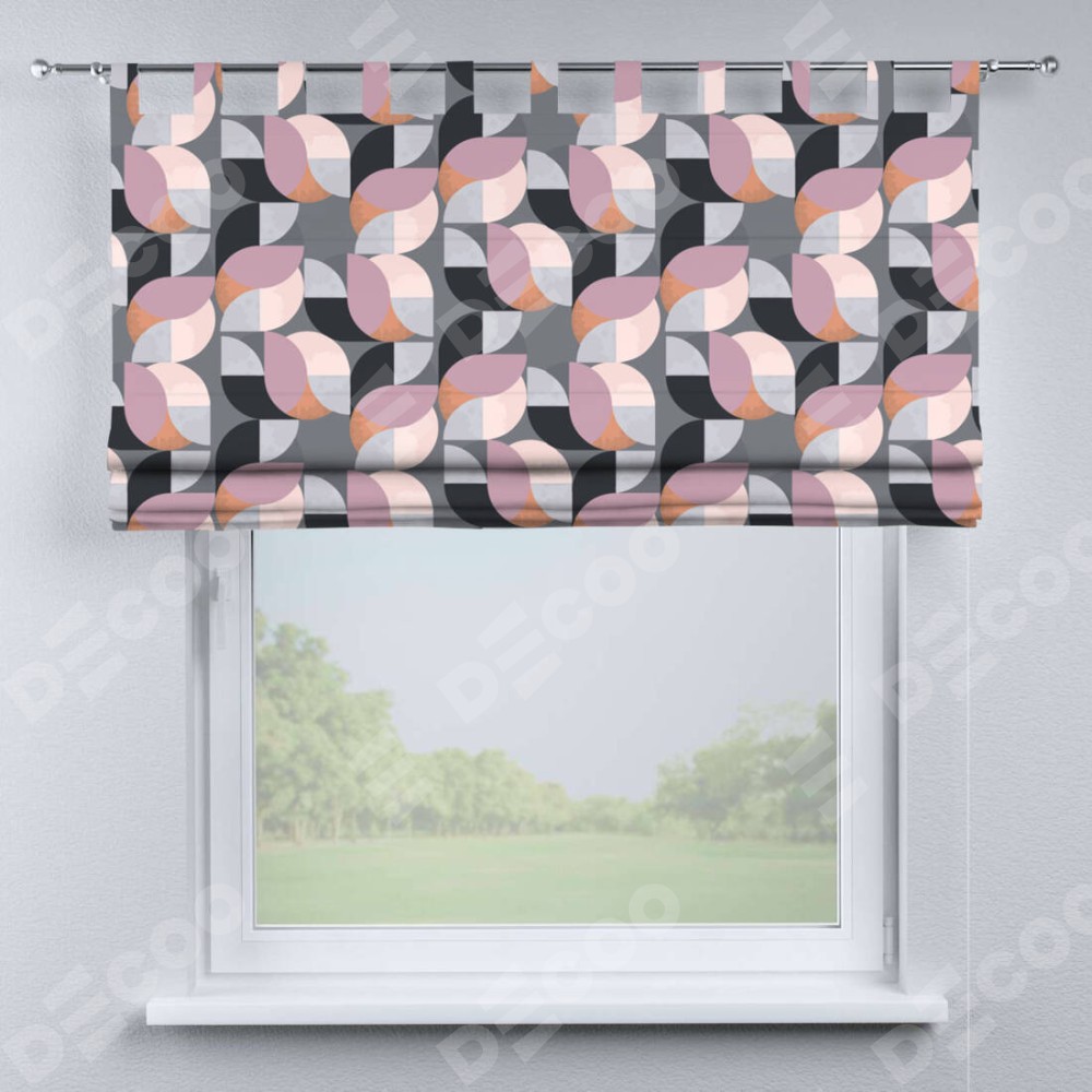 Римская штора производителя «Cortin», используется для проёма, пошита из ткани блэкаут с нанесением сублимационной печати «Абстрактный узор». Данная модель пошита на петлях, комплектуется на выбор круглым карнизом и подходит для монтажа на стену. Римская штора на петлях имеет простую систему регулировки высоты, отличительным преимуществом данной модели является простой способ монтажа. Достаточно повесить ее на трубу и штора готова!
