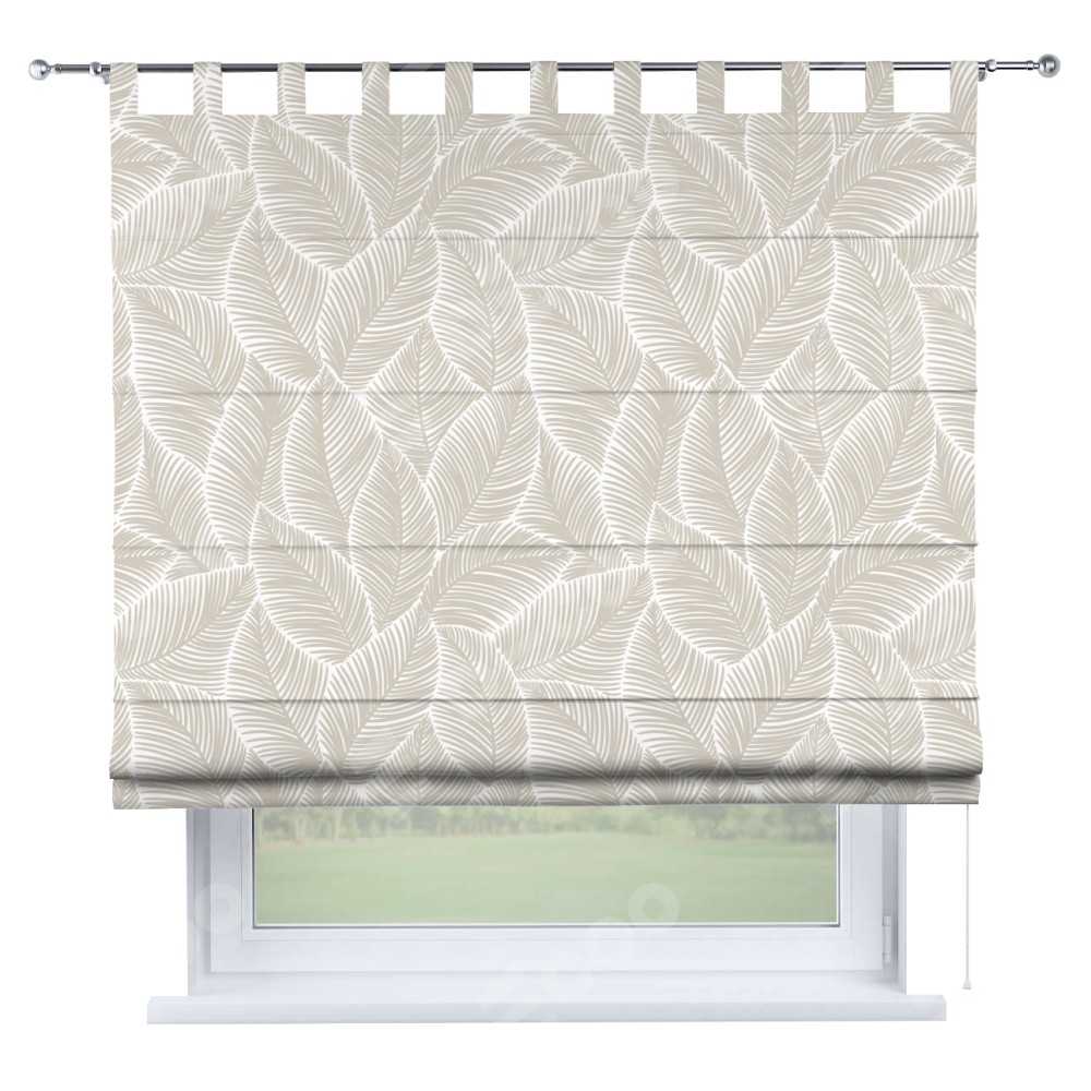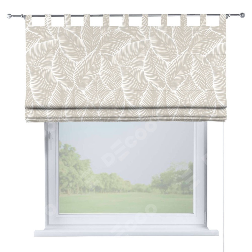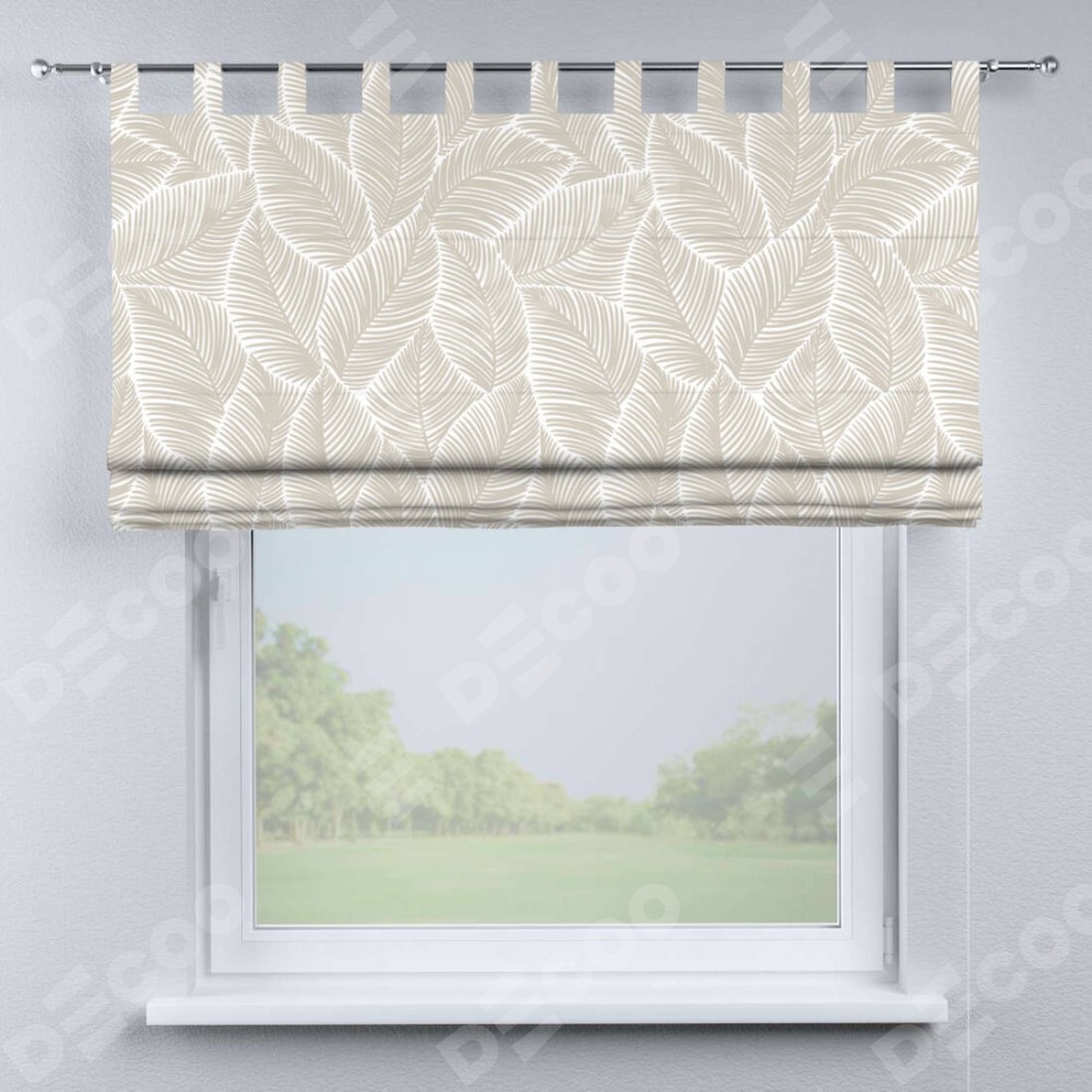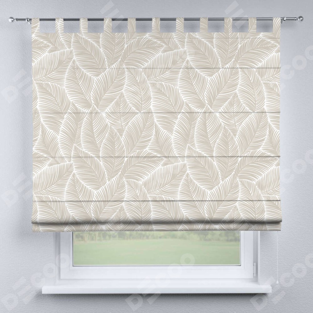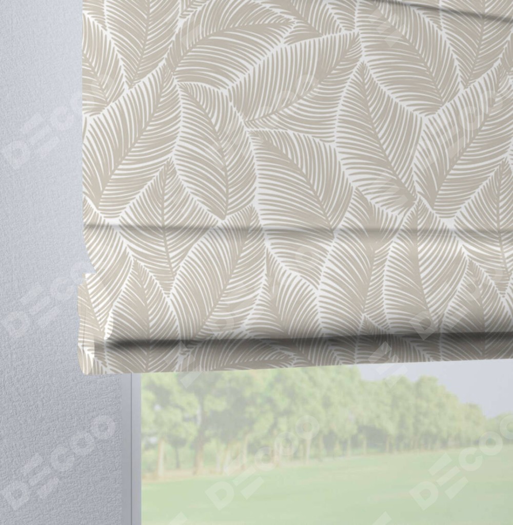Римская штора производителя «Cortin», используется для проёма, пошита из ткани блэкаут с нанесением сублимационной печати «Бежевые листья». Данная модель пошита на петлях, комплектуется на выбор круглым карнизом и подходит для монтажа на стену. Римская штора на петлях имеет простую систему регулировки высоты, отличительным преимуществом данной модели является простой способ монтажа. Достаточно повесить ее на трубу и штора готова!
