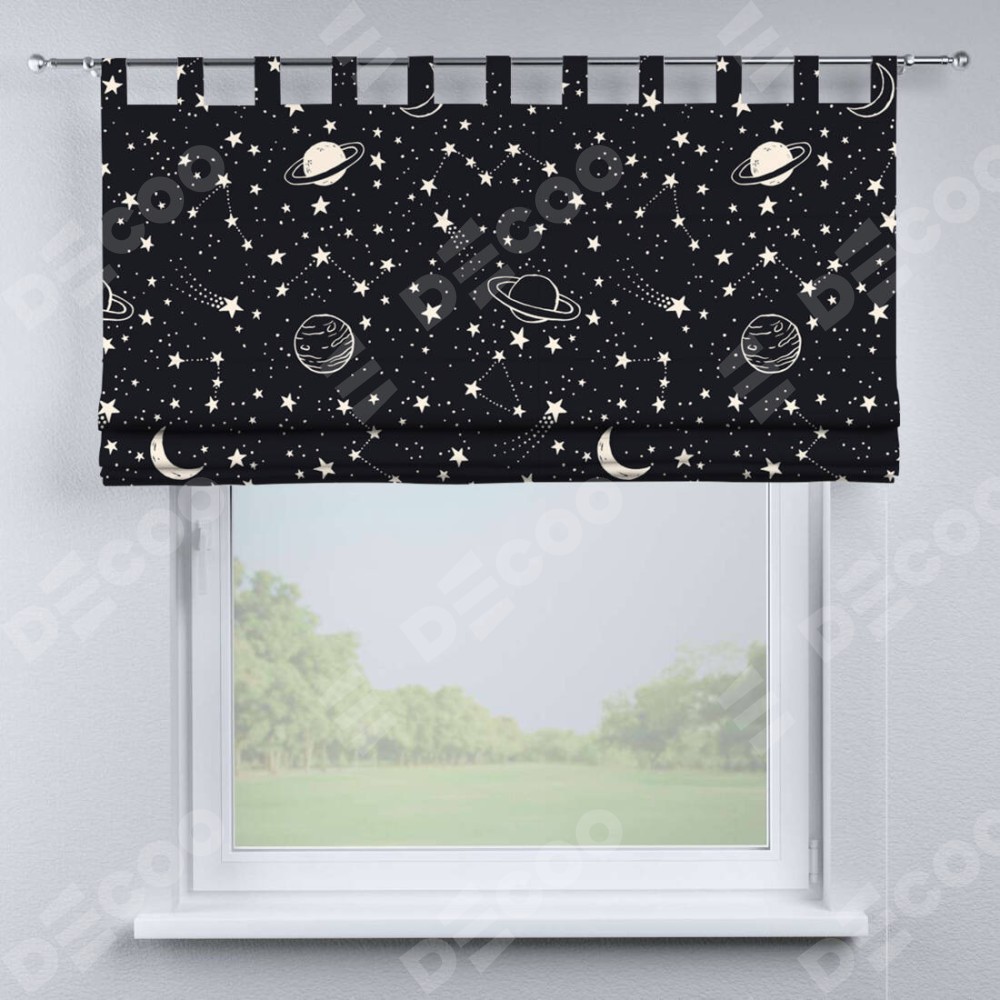 Римская штора производителя «Cortin», используется для проёма, пошита из ткани блэкаут с нанесением сублимационной печати «Глубокий космос». Данная модель пошита на петлях, комплектуется на выбор круглым карнизом и подходит для монтажа на стену. Римская штора на петлях имеет простую систему регулировки высоты, отличительным преимуществом данной модели является простой способ монтажа. Достаточно повесить ее на трубу и штора готова!
