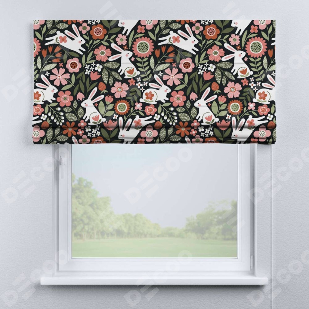 Римская штора «Кортин» для проема «Зайчики в цветнике»