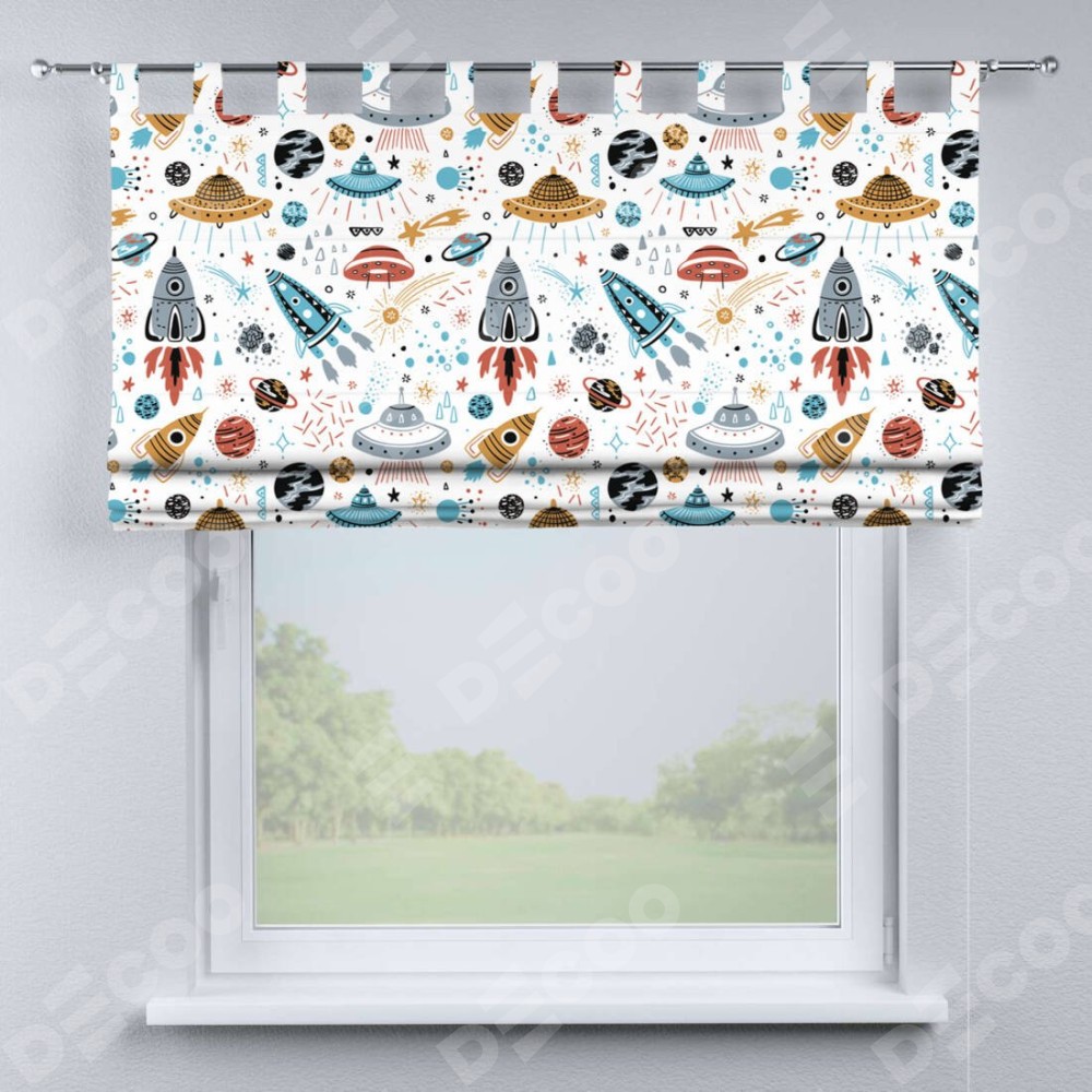 Римская штора производителя «Cortin», используется для проёма, пошита из ткани блэкаут с нанесением сублимационной печати «Космическое приключение». Данная модель пошита на петлях, комплектуется на выбор круглым карнизом и подходит для монтажа на стену. Римская штора на петлях имеет простую систему регулировки высоты, отличительным преимуществом данной модели является простой способ монтажа. Достаточно повесить ее на трубу и штора готова!