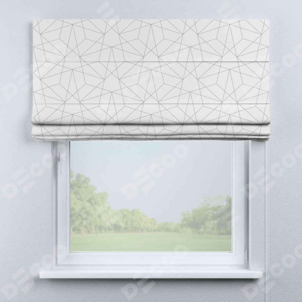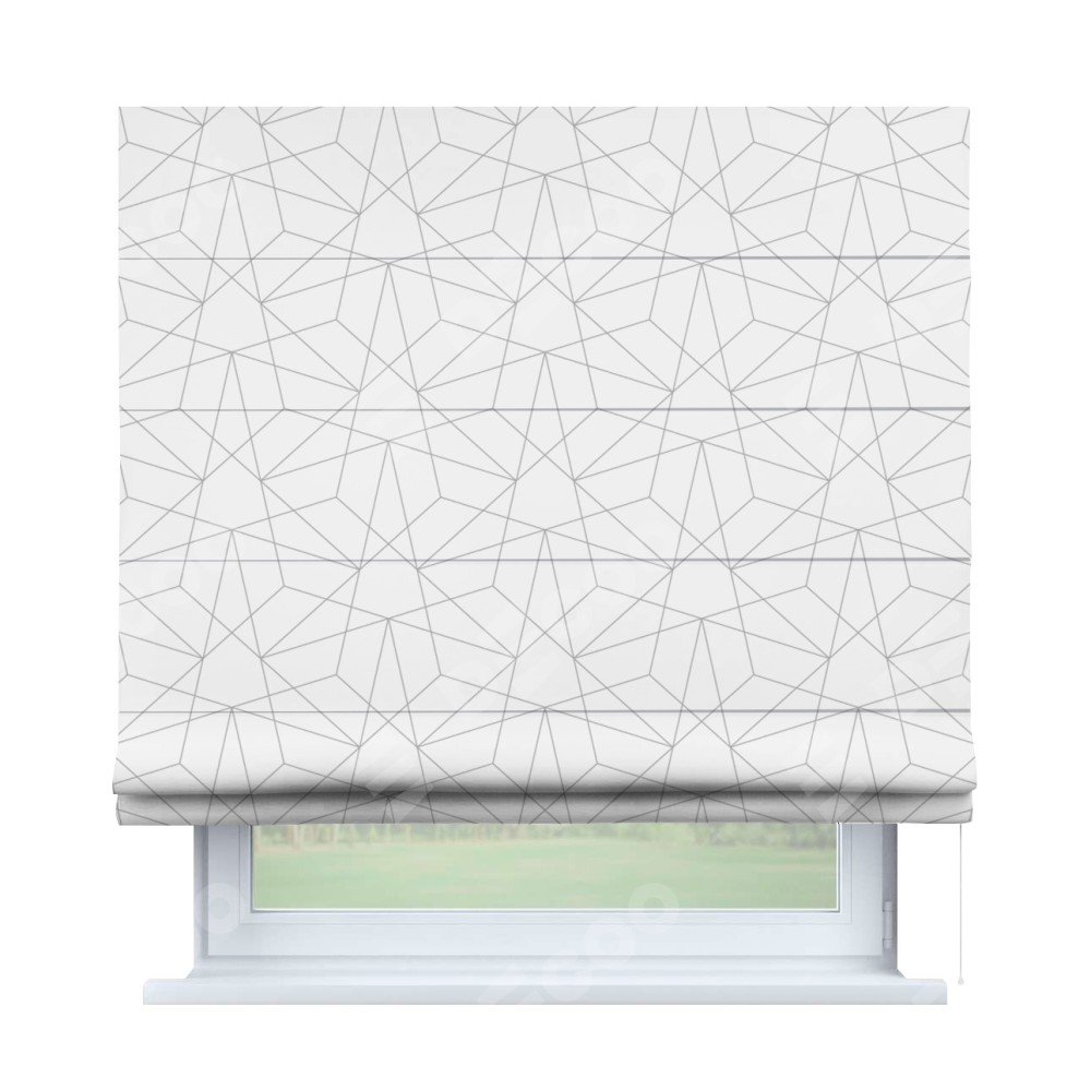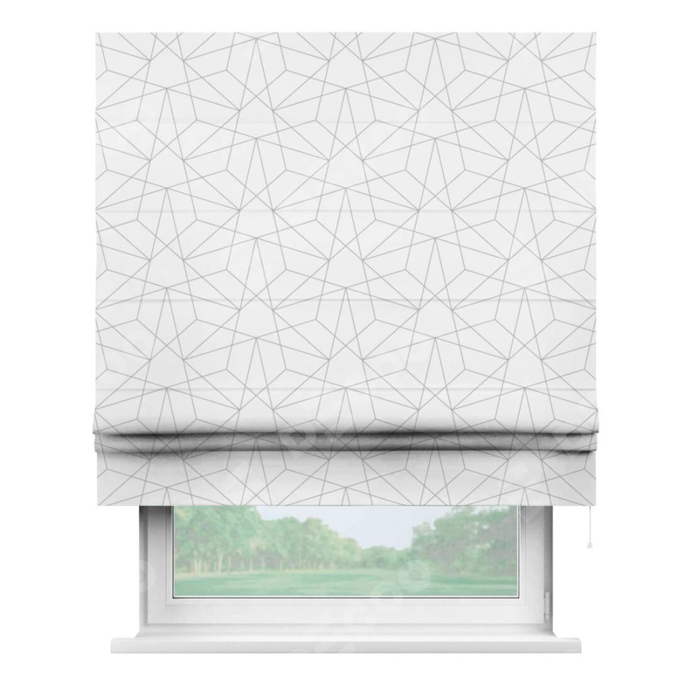 Римская штора производителя «Cortin», используется для проёма, пошита из ткани блэкаут с нанесением сублимационной печати «Простая геометрия». Имеет универсальный механизм и подходит для монтажа: на потолок, на стену и в нишу.