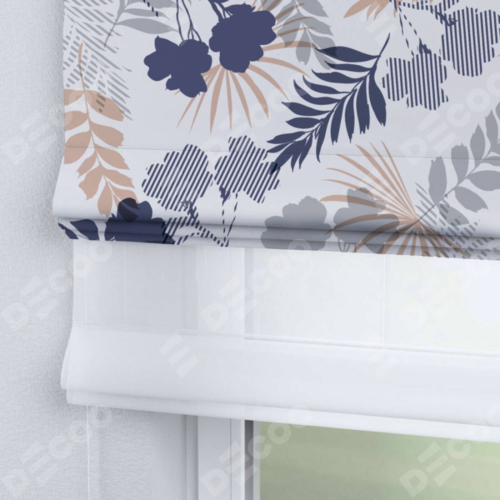 Римская штора день-ночь производителя «Cortin», используется для проёма, пошита из двух полотен, с лицевой блэкаут с нанесением сублимационной печати «Чарующий сад», вторая ткань тюль (по стандарту комплектуется тюль белого цвета артикул V-01). Имеет универсальный механизм и подходит для монтажа: на потолок, на стену и в нишу.