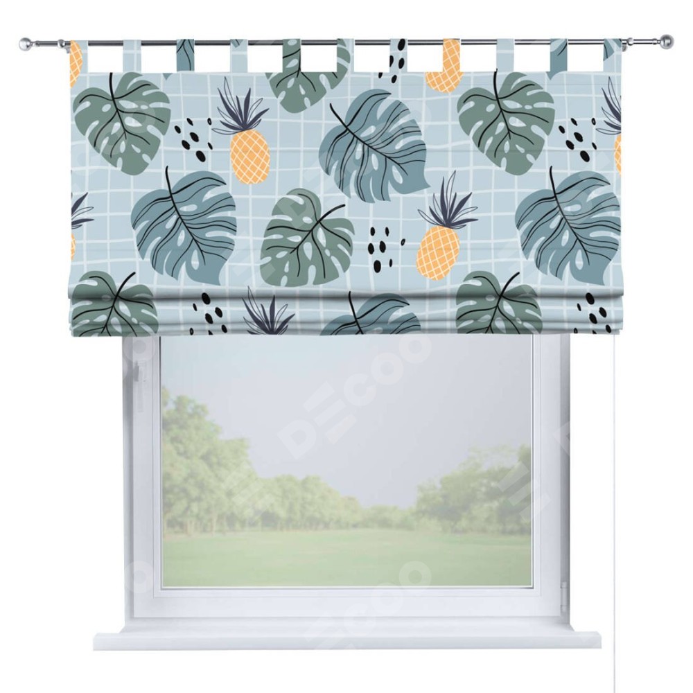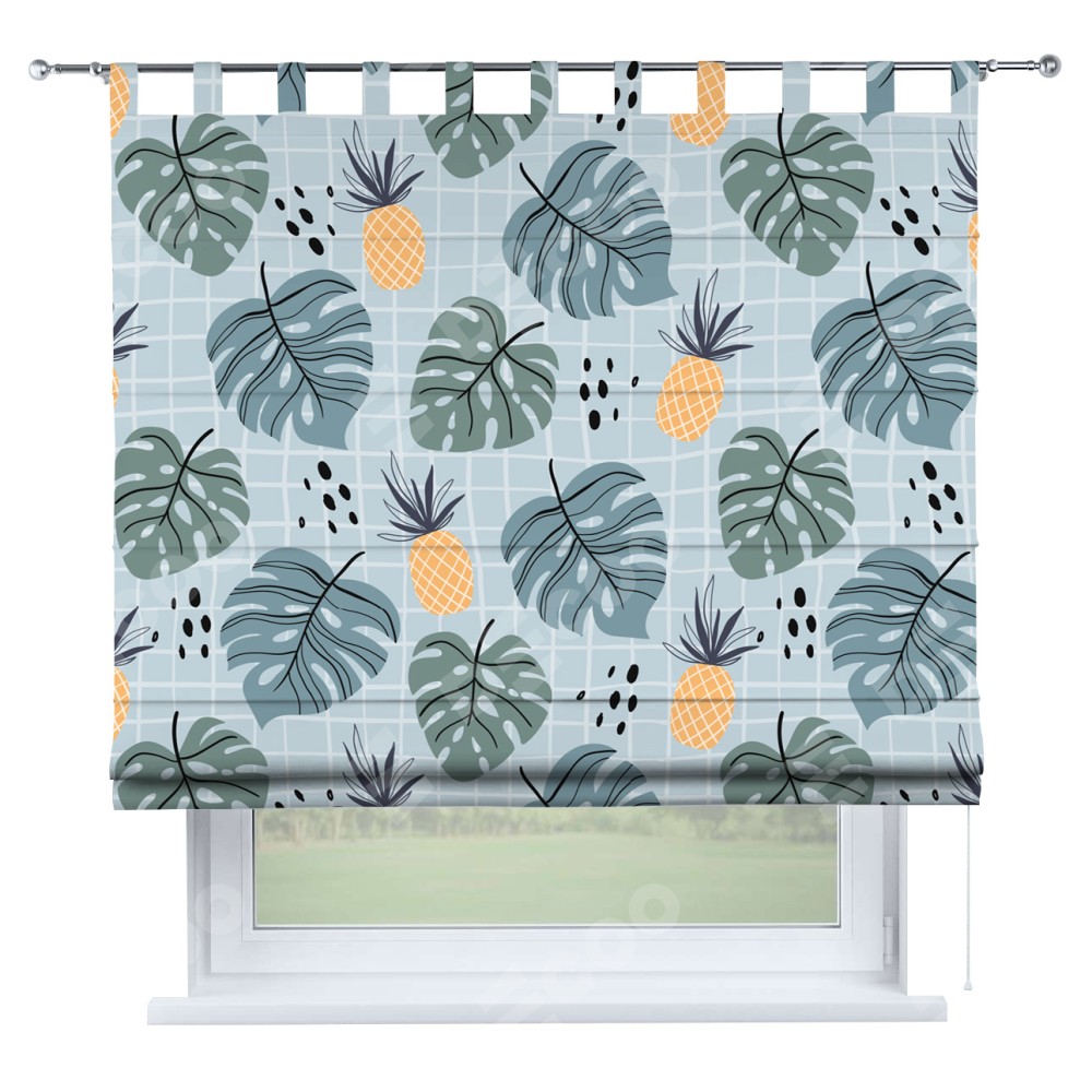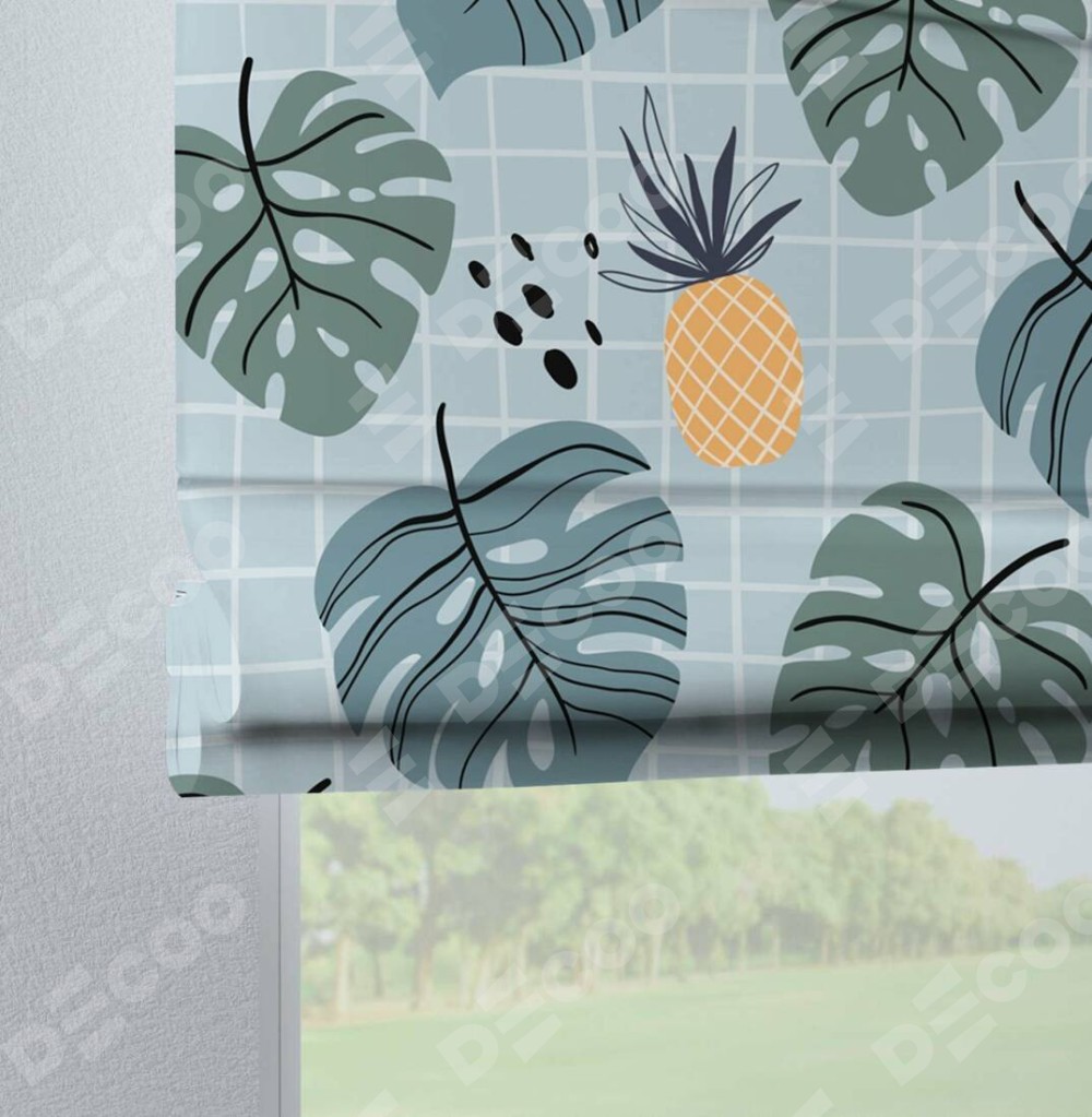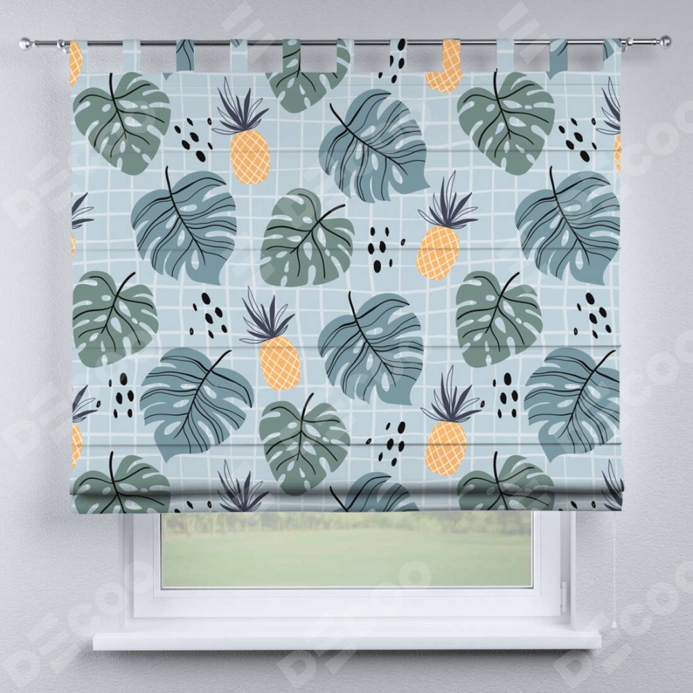 Римская штора на петлях «Ананасы и листья монстеры»