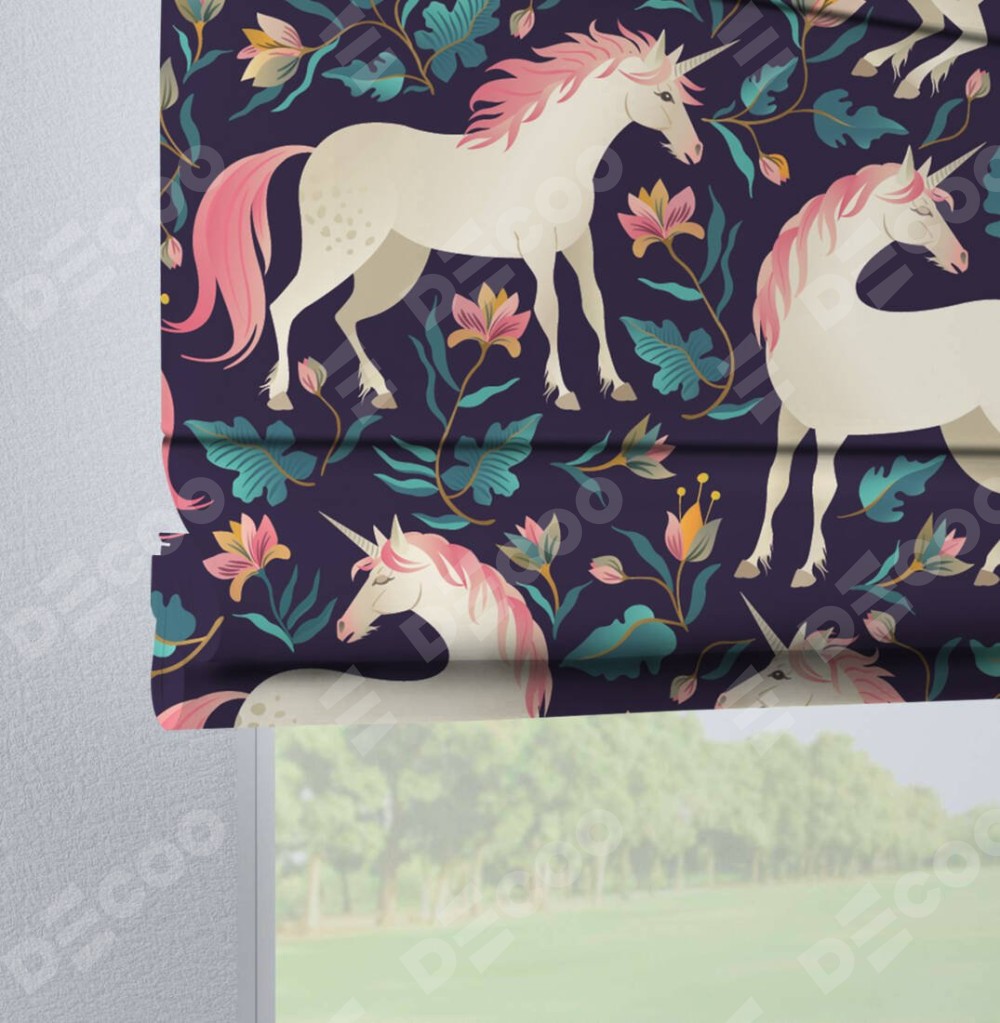 Римская штора на петлях «Сказочные единороги»