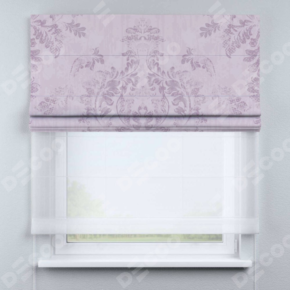 Римская штора «Кортин» день-ночь «Винтажный узор сиреневый»