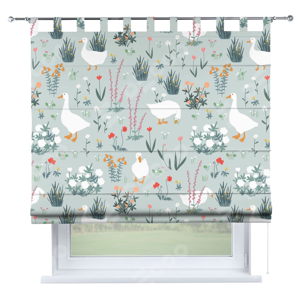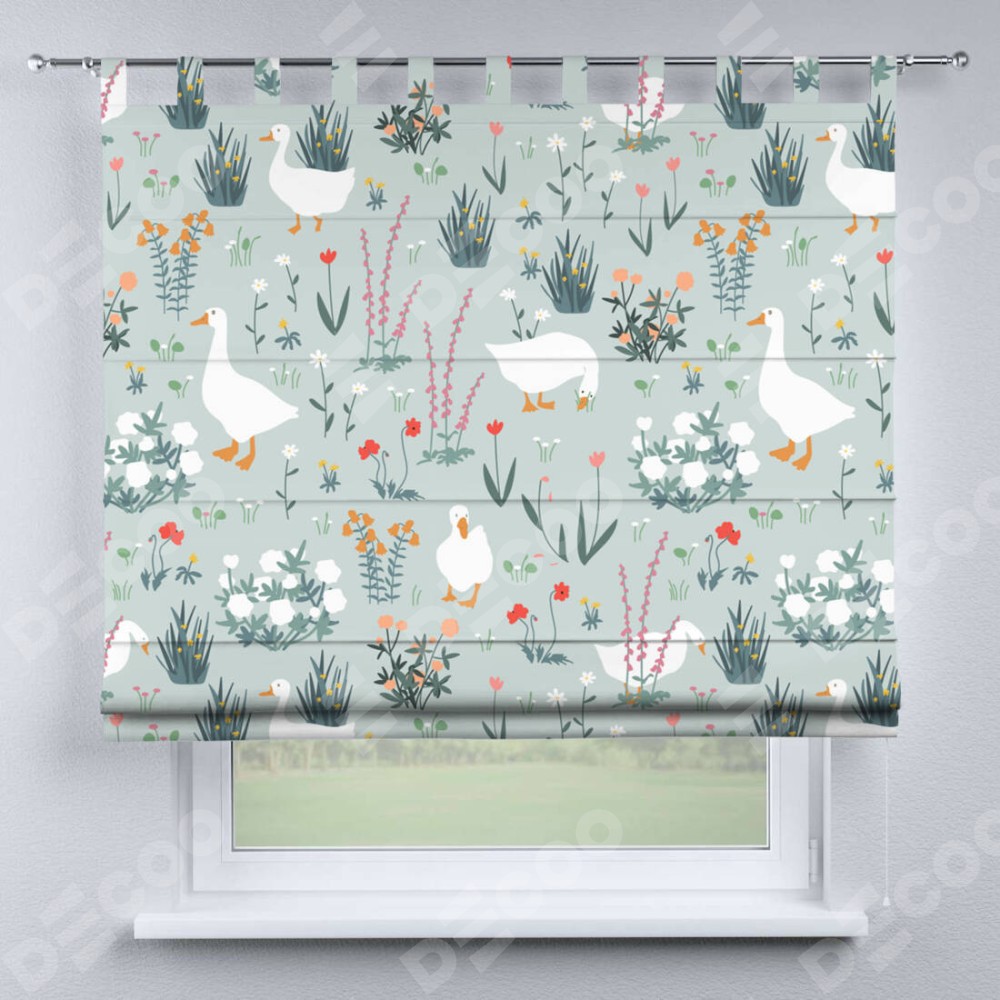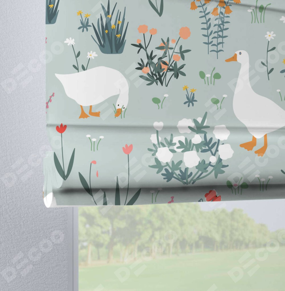Римская штора на петлях «Гуси на лугу»