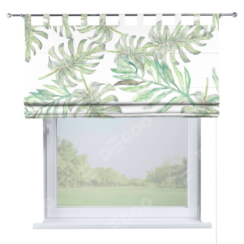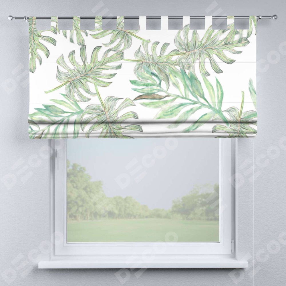 Римская штора производителя «Cortin», используется для проёма, пошита из ткани блэкаут с нанесением сублимационной печати «Листья монстеры». Данная модель пошита на петлях, комплектуется на выбор круглым карнизом и подходит для монтажа на стену. Римская штора на петлях имеет простую систему регулировки высоты, отличительным преимуществом данной модели является простой способ монтажа. Достаточно повесить ее на трубу и штора готова!