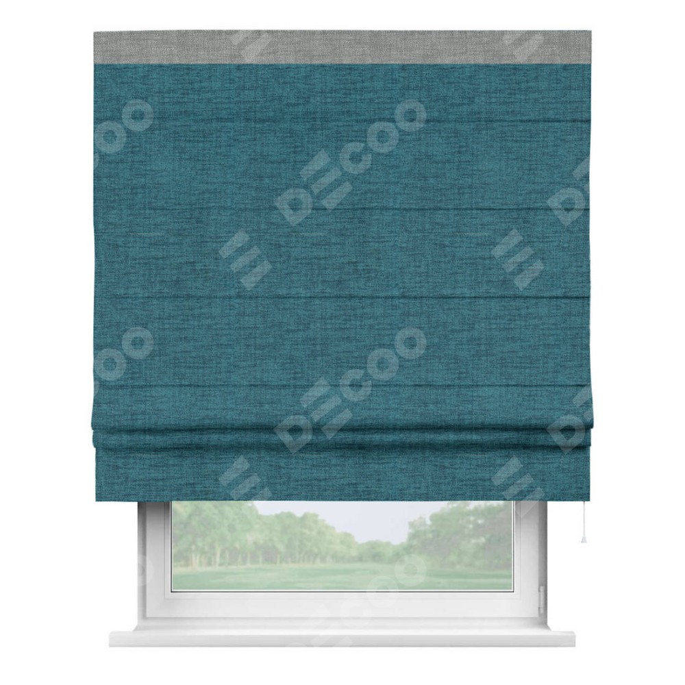 Римская штора «Кортин» с кантом Кинг, для проема, ткань рогожка димаут, синий