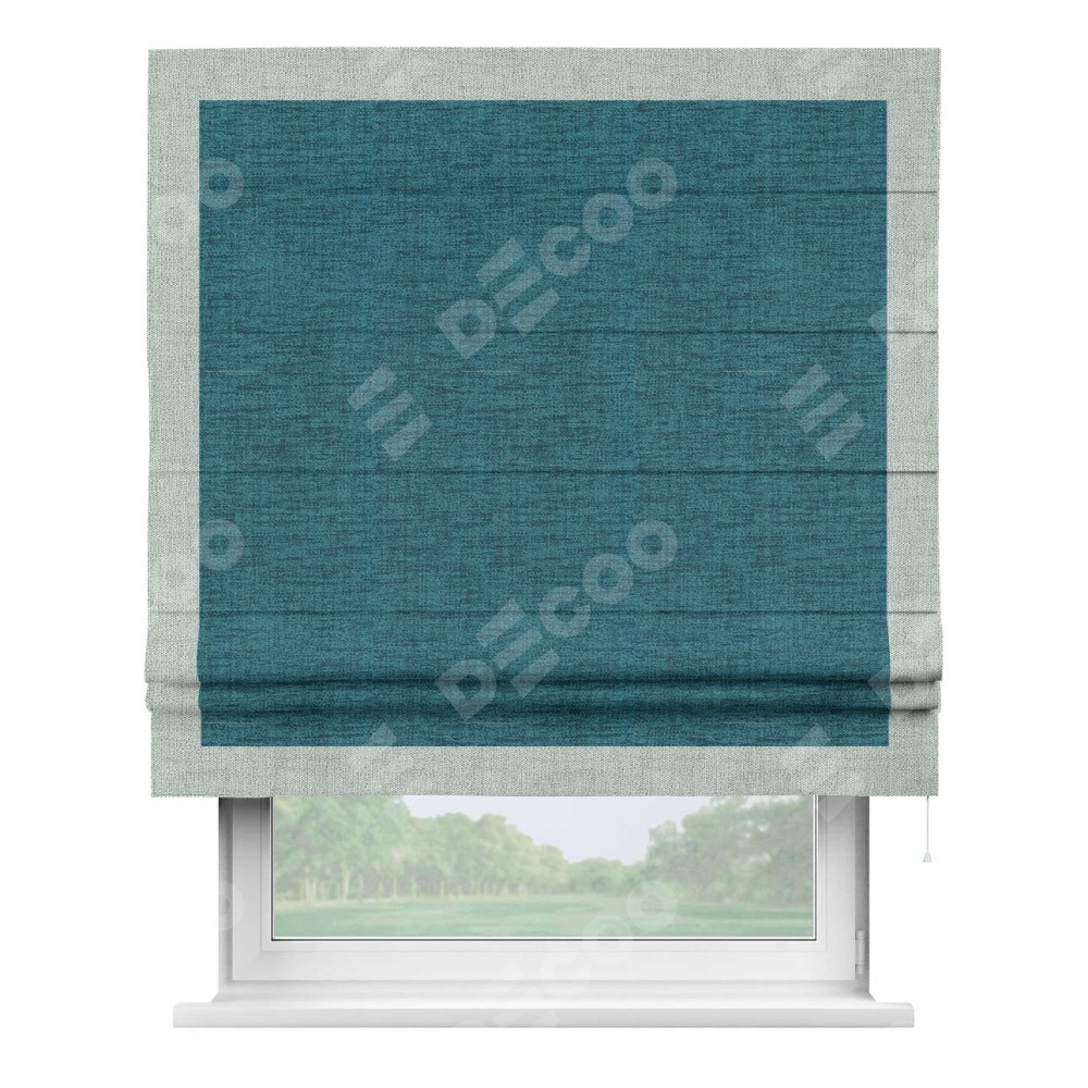 Римская штора «Кортин» с кантом Чесс, для проема, ткань рогожка димаут, синий