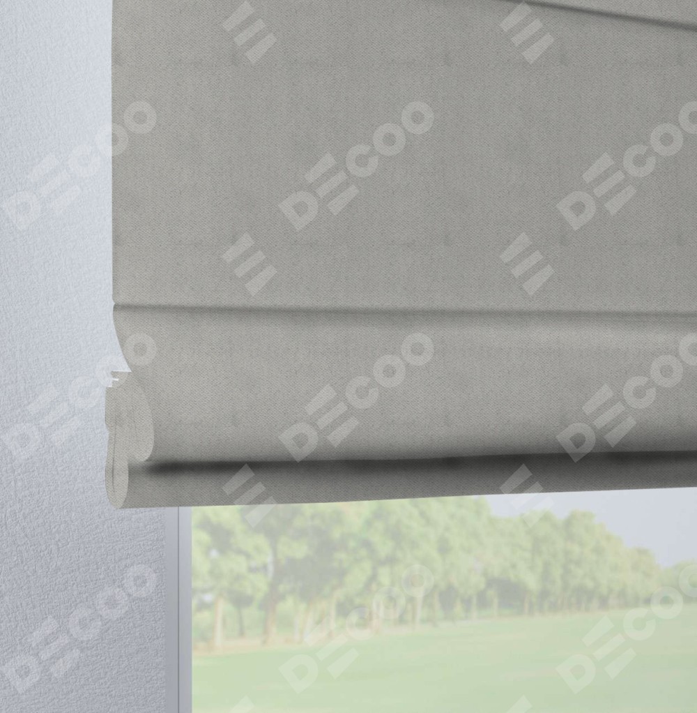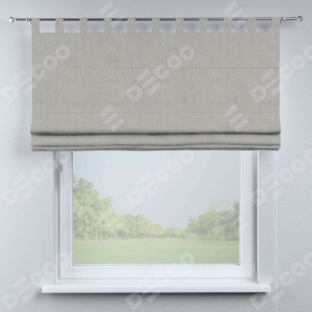 Римская штора производителя «Cortin», используется для проёма, пошита из ткани блэкаут с блеском тёмно-серый, артикул ткани 34634. Изнаночная сторона материала черного цвета, что обеспечивает необходимую светонепроницаемость. Данная модель пошита на петлях, комплектуется на выбор круглым карнизом и подходит для монтажа на стену. Римская штора на петлях имеет простую систему регулировки высоты, отличительным преимуществом данной модели является простой способ монтажа. Достаточно повесить ее на трубу и штора готова!
