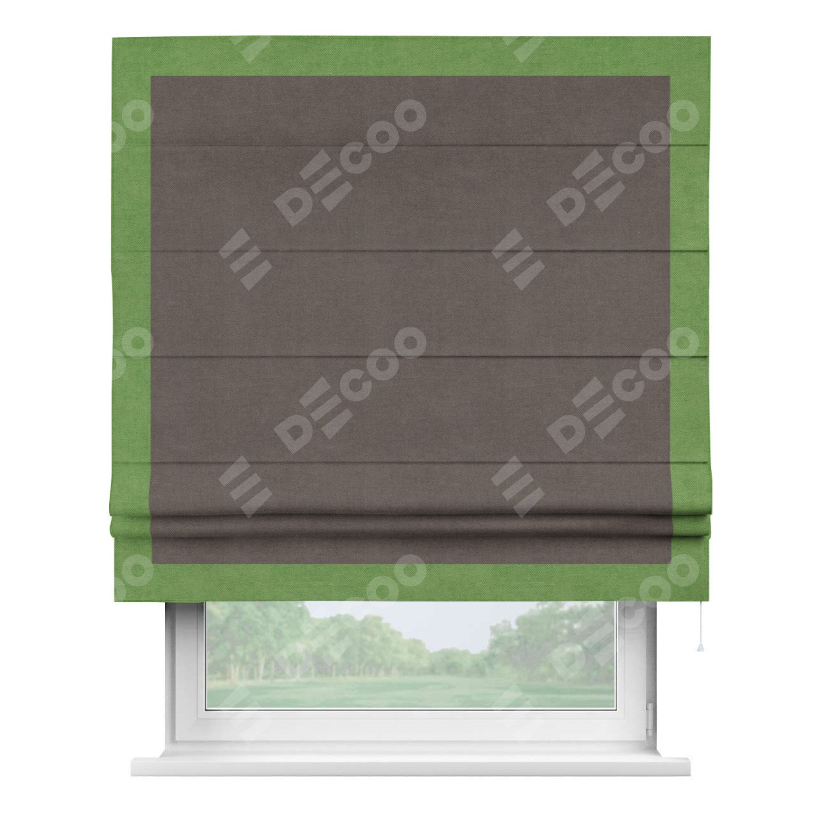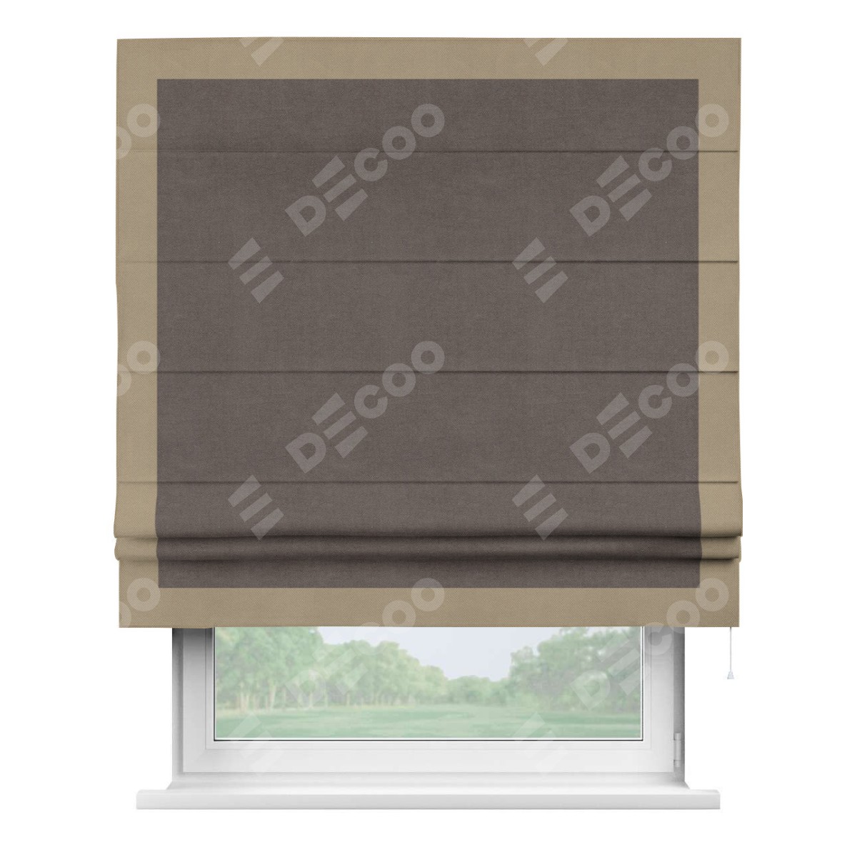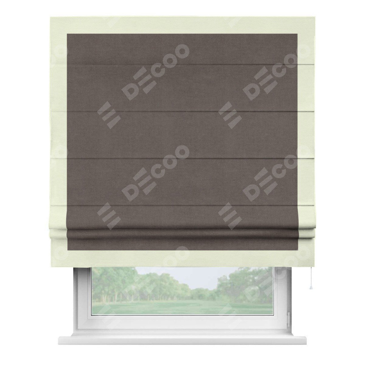 Римская штора производителя «Cortin», используется для проёма, пошита из ткани вельвет коричневый, артикул ткани 14135. Отделка шторы кантом «Чесс», ткань для канта используется из вельвета разной расцветки на выбор. Имеет универсальный механизм и подходит для монтажа: на потолок, на стену и в нишу.