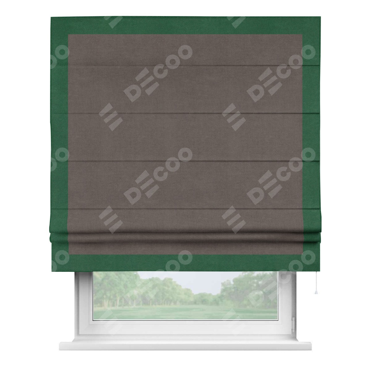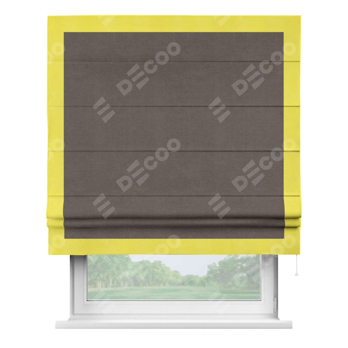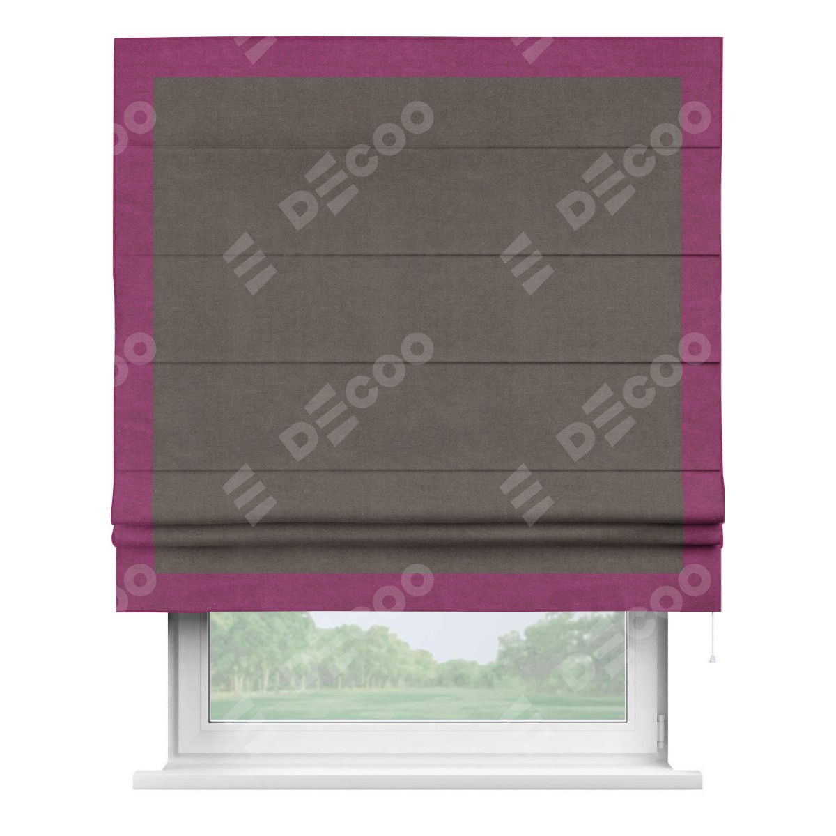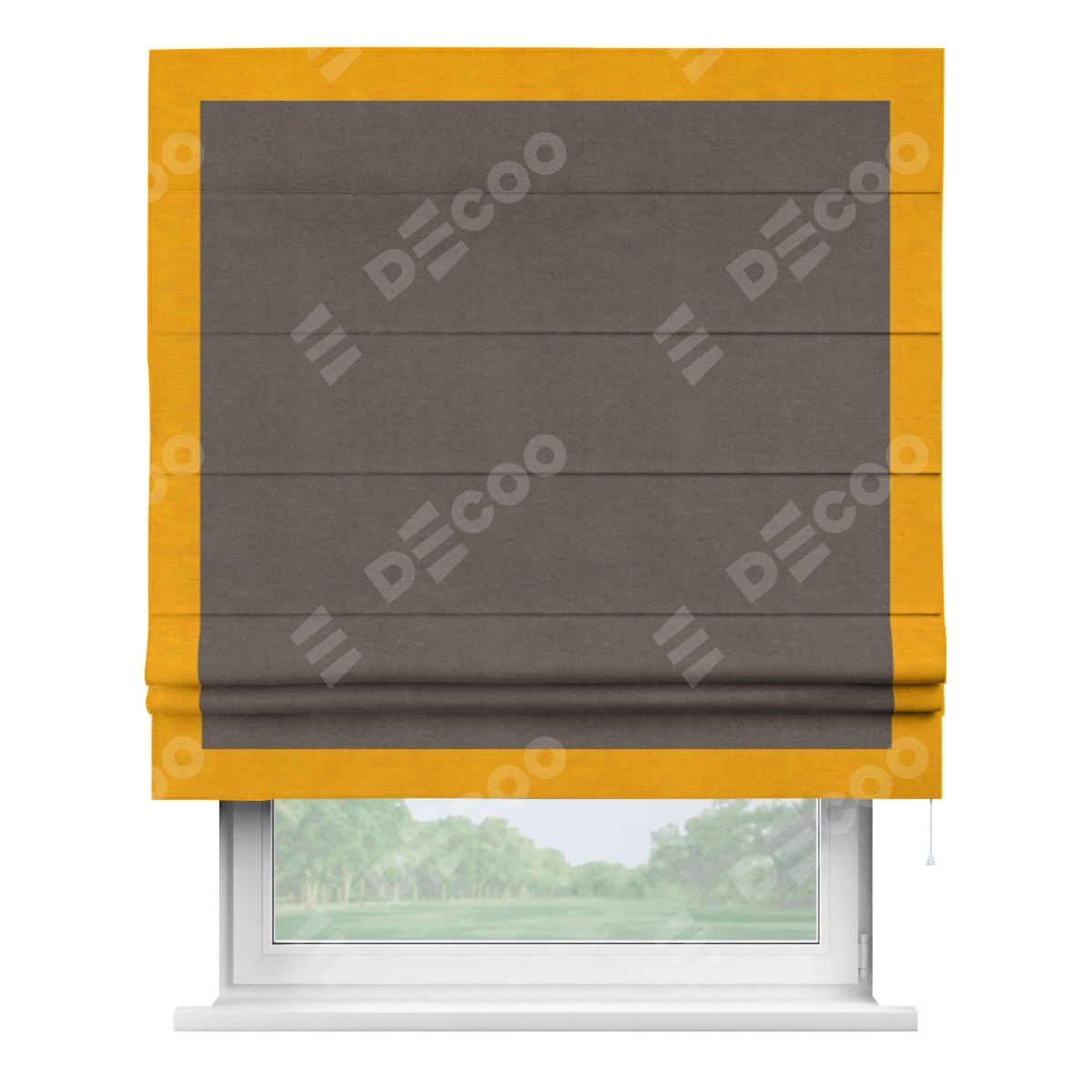 Римская штора производителя «Cortin», используется для проёма, пошита из ткани вельвет коричневый, артикул ткани 14135. Отделка шторы кантом «Чесс», ткань для канта используется из вельвета разной расцветки на выбор. Имеет универсальный механизм и подходит для монтажа: на потолок, на стену и в нишу.