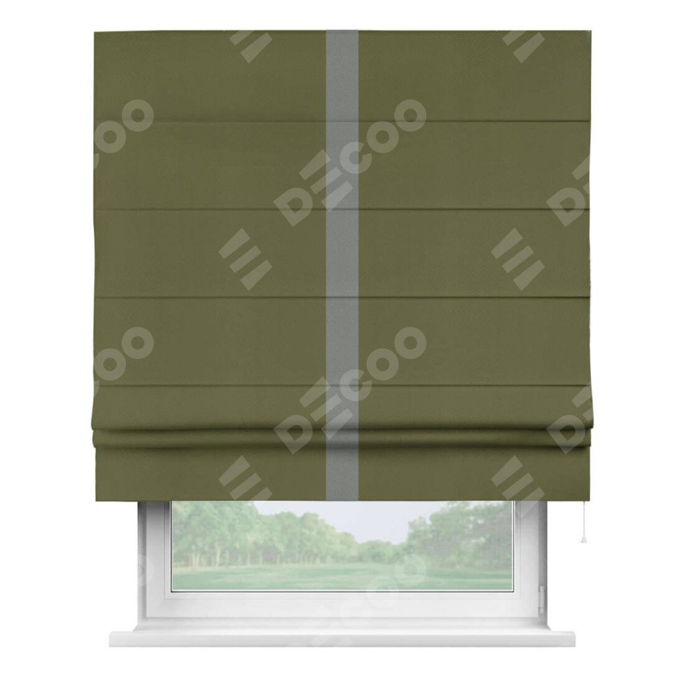 Римская штора «Кортин» с кантом Хайвэй, для проема, ткань блэкаут однотонный зелёный