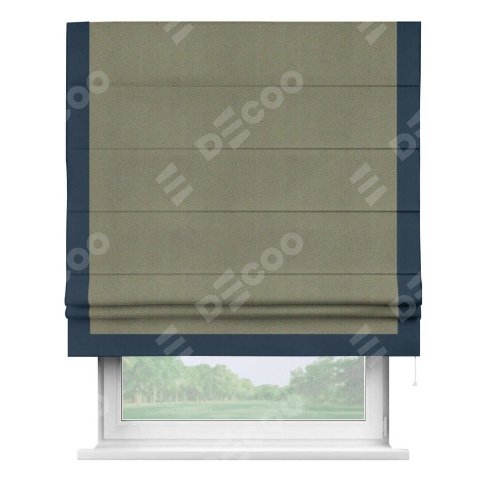 Римская штора производителя «Cortin», используется для проёма, пошита из ткани блэкаут однотонный серо-коричневый, артикул ткани 29568. Отделка шторы кантом «Виктория», ткань для канта используется из блэкаута однотонного разной расцветки на выбор. Имеет универсальный механизм и подходит для монтажа: на потолок, на стену и в нишу.