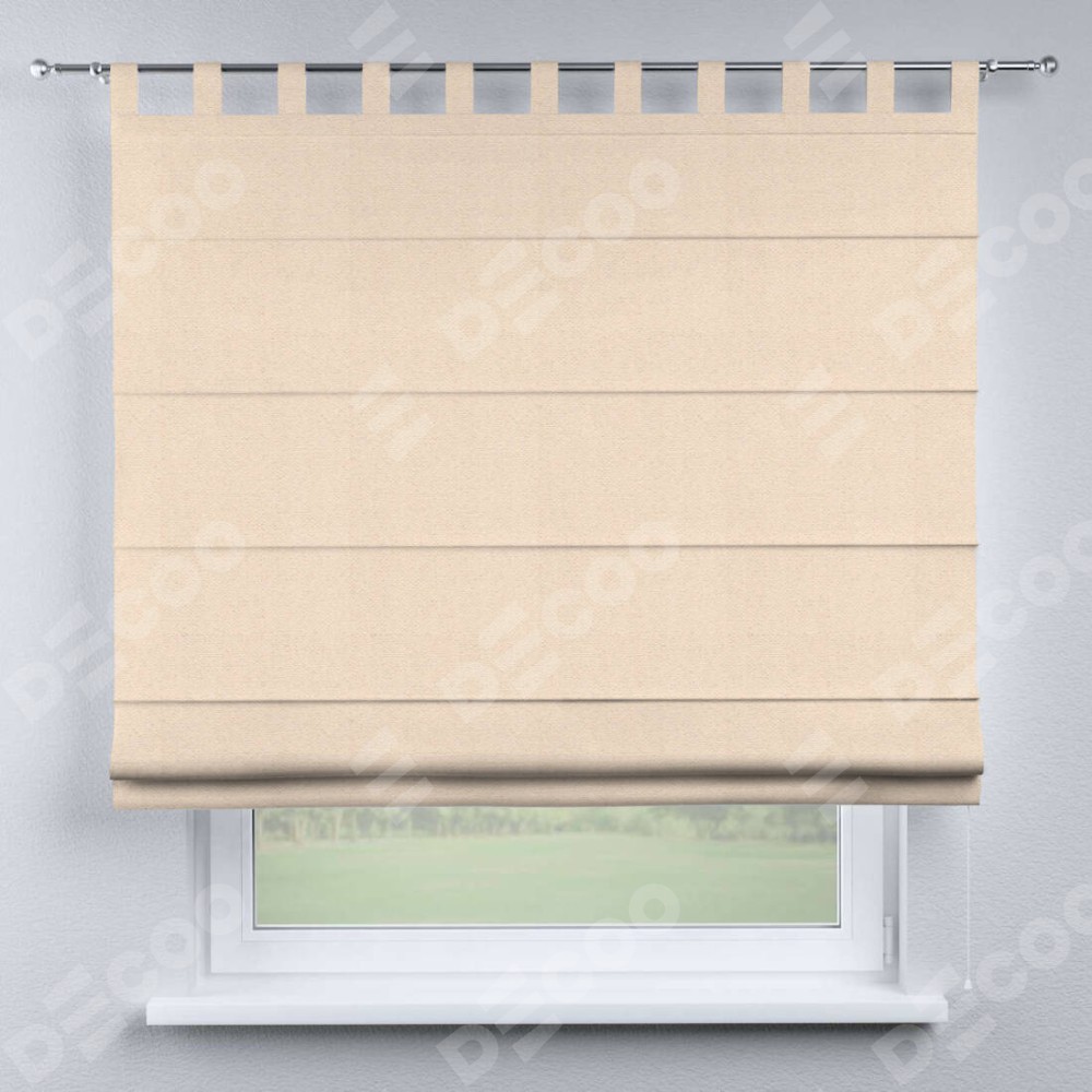 Римская штора производителя «Cortin», используется для проёма, пошита из ткани блэкаут тиснение с блеском розовая пудра, артикул ткани 34632. Изнаночная сторона материала черного цвета, что обеспечивает необходимую светонепроницаемость. Данная модель пошита на петлях, комплектуется на выбор круглым карнизом и подходит для монтажа на стену. Римская штора на петлях имеет простую систему регулировки высоты, отличительным преимуществом данной модели является простой способ монтажа. Достаточно повесить ее на трубу и штора готова!