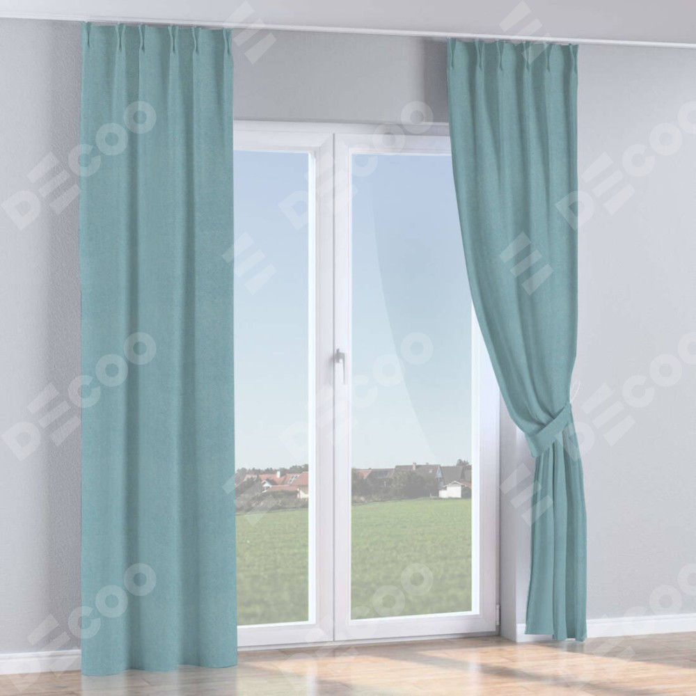 Комплект прямых штор, от производителя «Cortin», пошиты из ткани блэкаут с блеском синий, артикул ткани 34625. С изнаночной стороны в верхней части штор пристрачивается шторная лента с декоративными складками «Кустик». Обратная сторона основного материала черного цвета, что обеспечивает необходимую светонепроницаемость. Для создания элегантных складок прямые шторы шьются по стандарту с коэффициентом 1:2 (на 100 см. ширины проёма 200 см. ширины ткани).