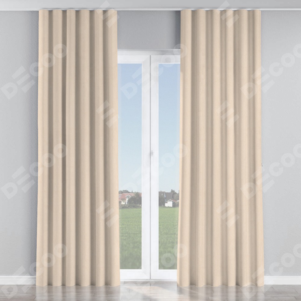 Комплект прямых штор, от производителя «Cortin», пошиты из ткани блэкаут с блеском розовая пудра, артикул ткани 34632. С изнаночной стороны в верхней части штор пристрачивается шторная лента с декоративными складками «Волна». Обратная сторона основного материала черного цвета, что обеспечивает необходимую светонепроницаемость. Для создания элегантных складок прямые шторы шьются по стандарту с коэффициентом 1:2 (на 100 см. ширины проёма 200 см. ширины ткани).