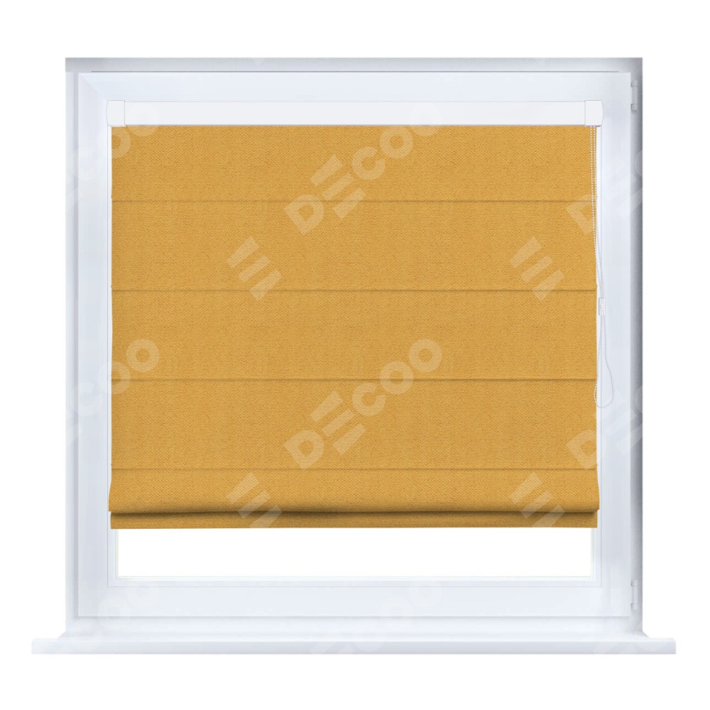 Римская штора производителя «Cortin», устанавливается на створку окна, пошита из ткани блэкаут тиснение с блеском золотой, артикул 34626. Изнаночная сторона материала черного цвета, что обеспечивает необходимую светонепроницаемость. Штора шьётся по индивидуальным размерам, для данного типа римской шторы возможная ширина от 35 до 150 см., высота до 250 см.