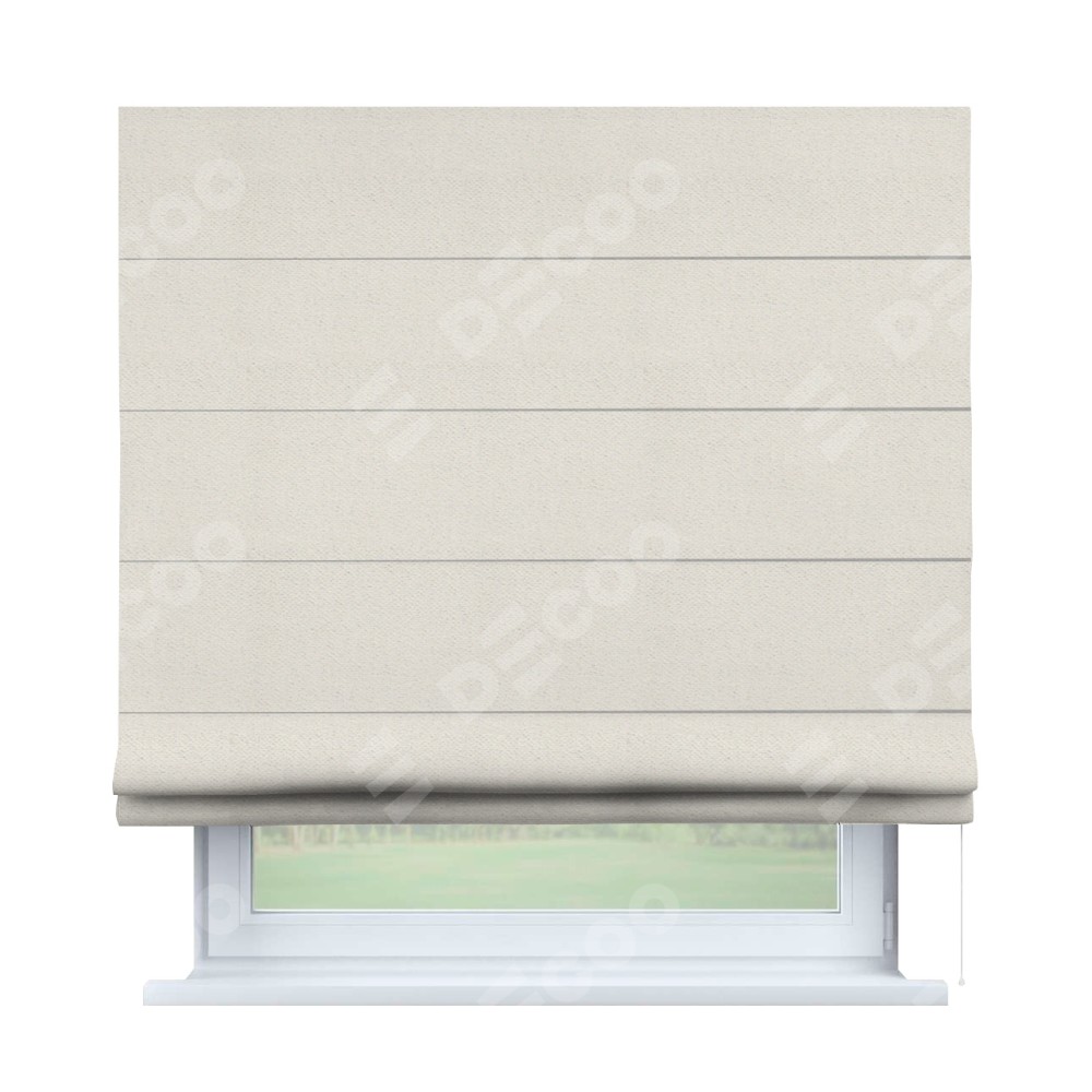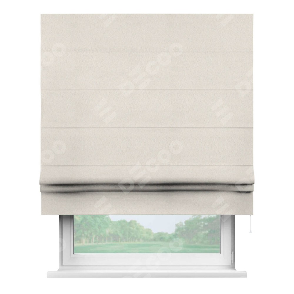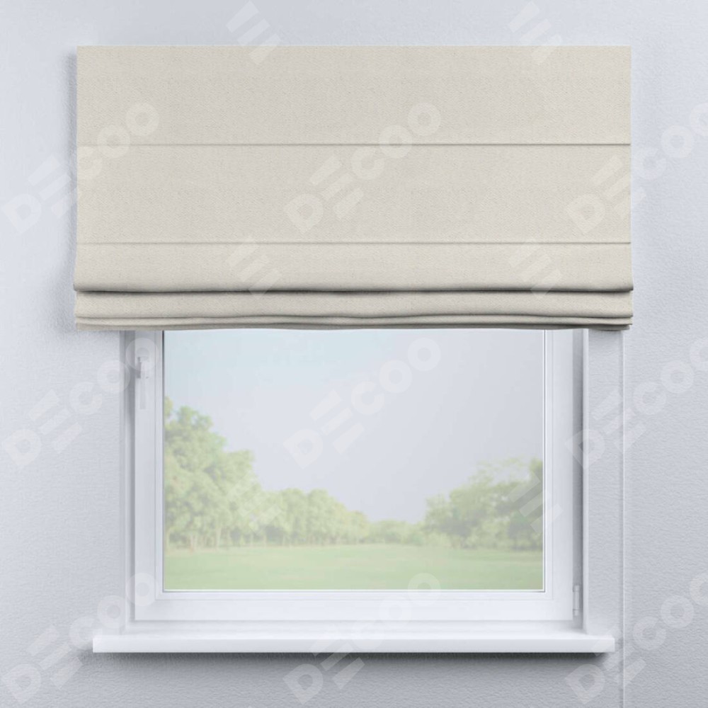 Римская штора производителя «Cortin», используется для проёма, пошита из ткани блэкаут тиснение с блеском светло-серый, артикул ткани 34633. Изнаночная сторона материала черного цвета, что обеспечивает необходимую светонепроницаемость. Имеет универсальный механизм и подходит для монтажа: на потолок, на стену и в нишу.