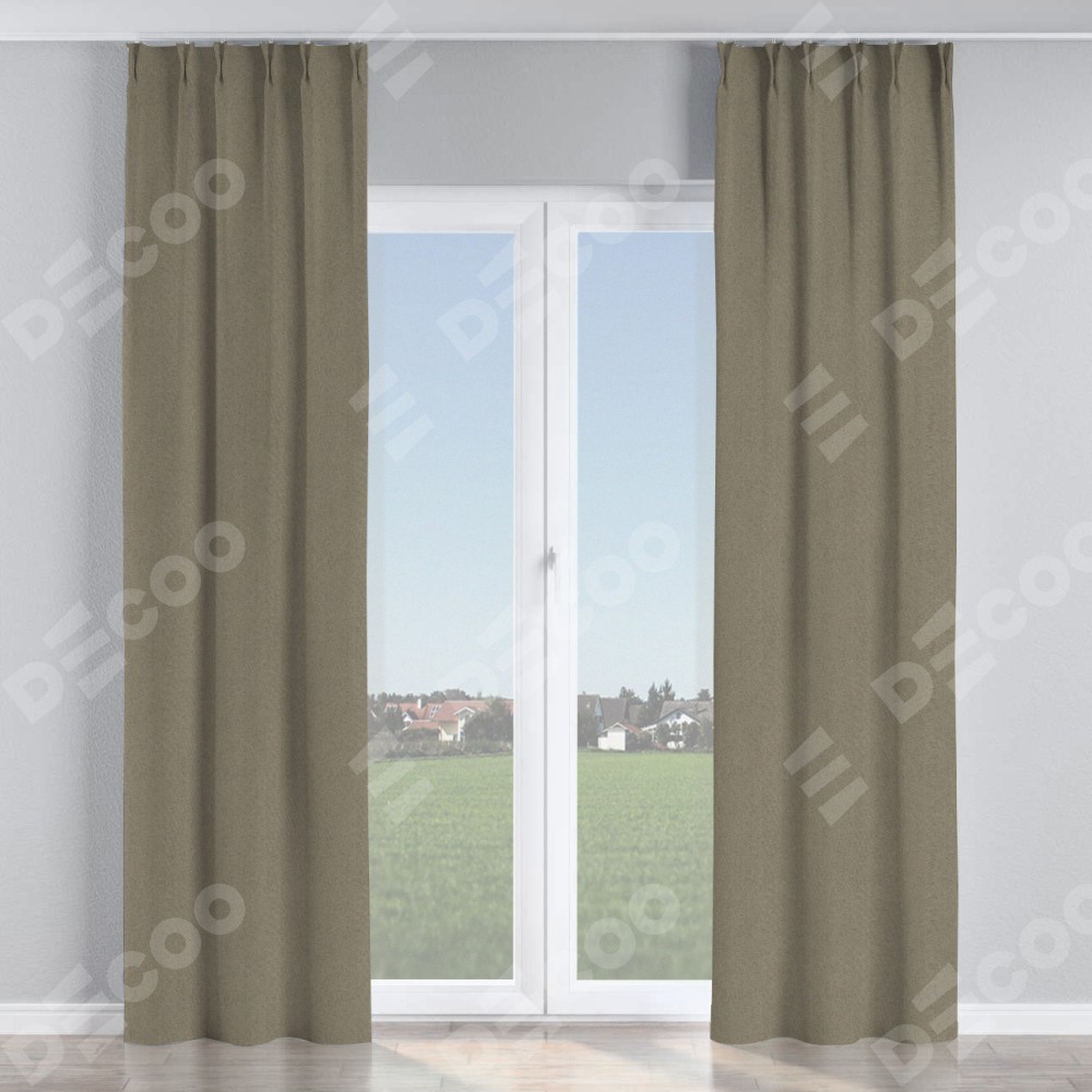 Комплект прямых штор, от производителя «Cortin», пошиты из ткани блэкаут с блеском графитовый, артикул ткани 34648. С изнаночной стороны в верхней части штор пристрачивается шторная лента с декоративными складками «Кустик». Обратная сторона основного материала черного цвета, что обеспечивает необходимую светонепроницаемость. Для создания элегантных складок прямые шторы шьются по стандарту с коэффициентом 1:2 (на 100 см. ширины проёма 200 см. ширины ткани).