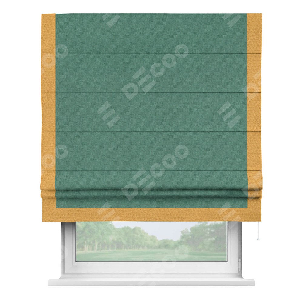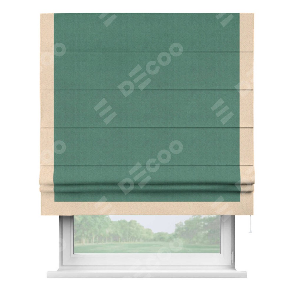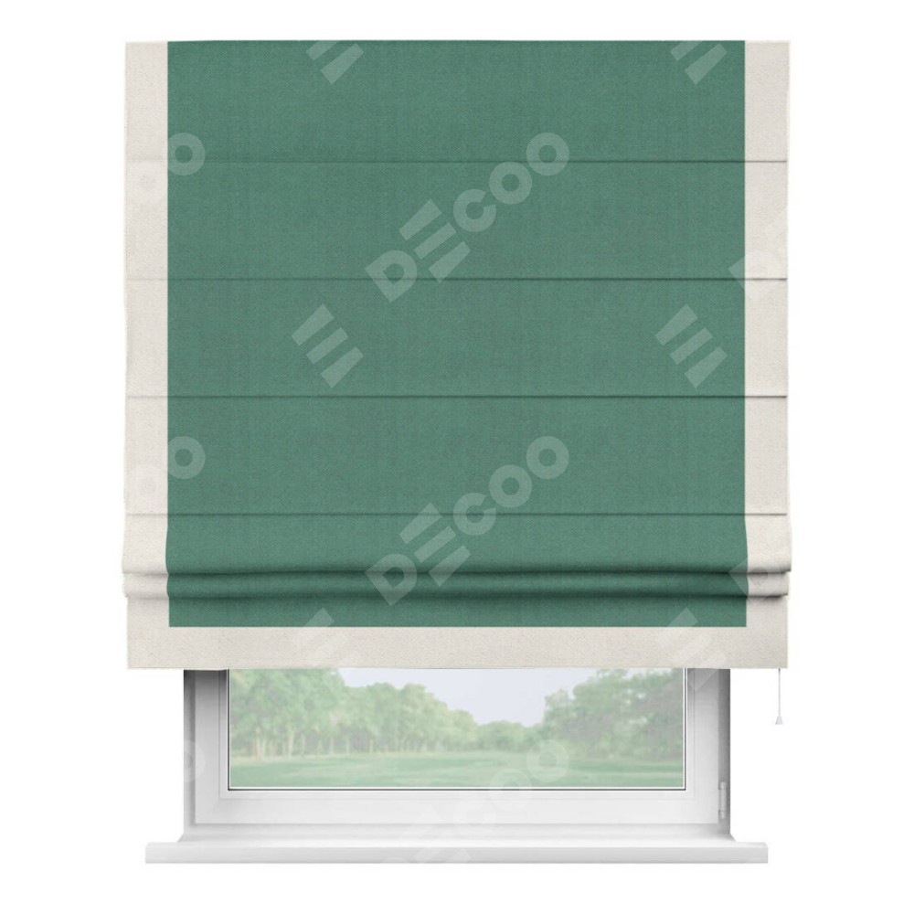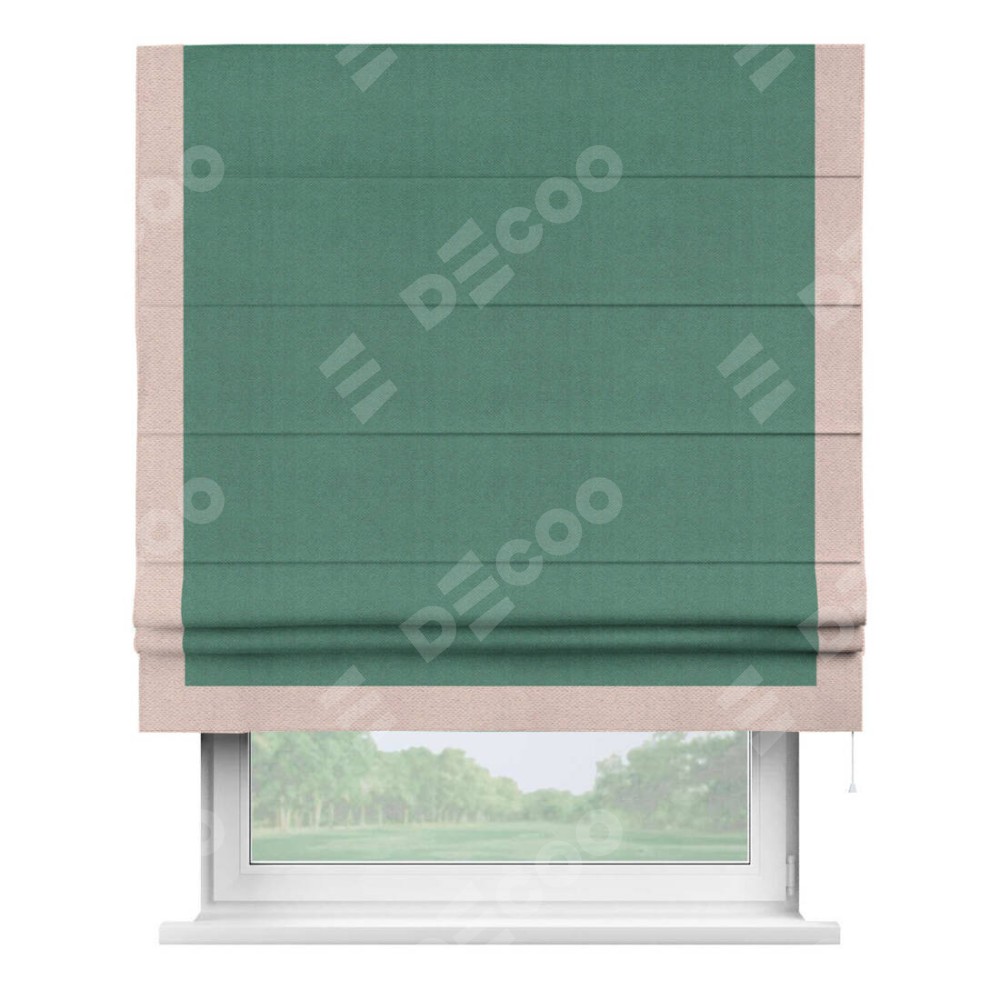 Римская штора «Кортин» с кантом Виктория, для проема, ткань блэкаут с блеском изумрудный