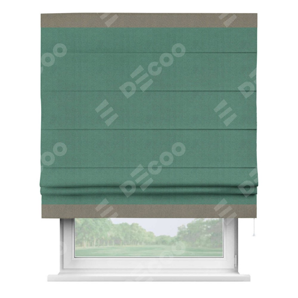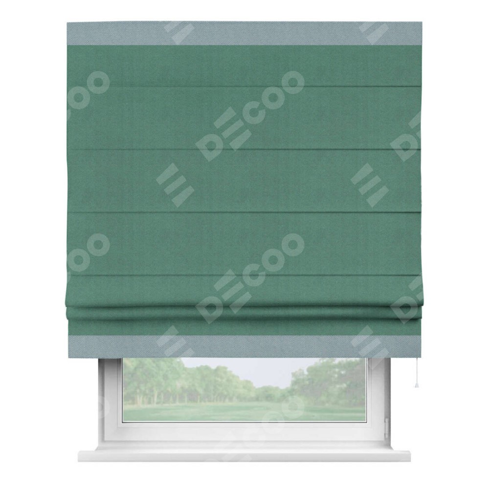 Римская штора «Кортин» с кантом Горизонт, для проема, ткань блэкаут с блеском изумрудный