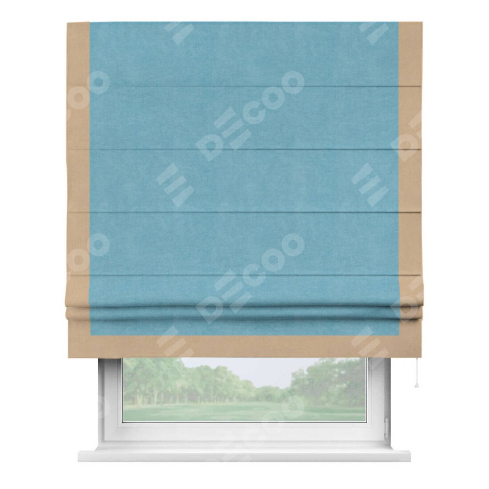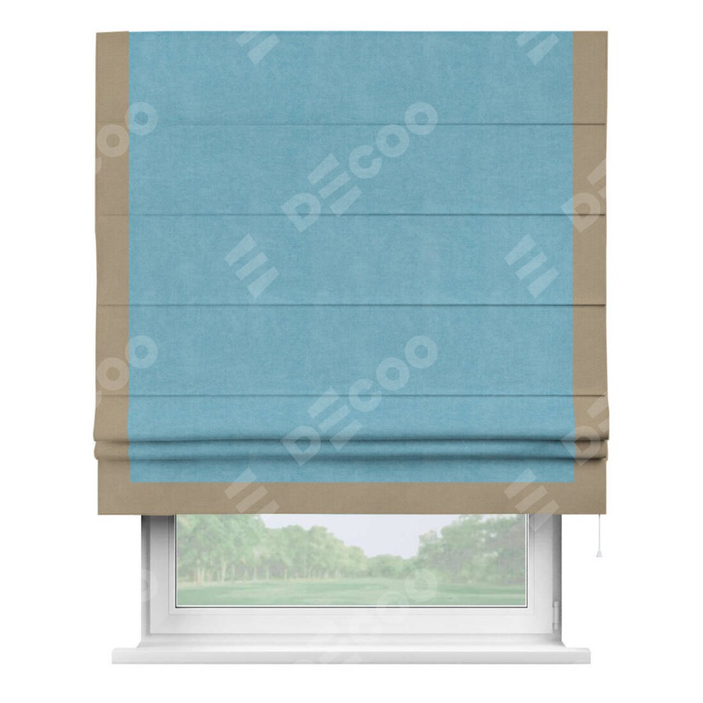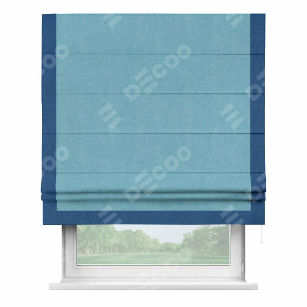 Римская штора «Кортин» с кантом Виктория, для проема, ткань вельвет ментоловый