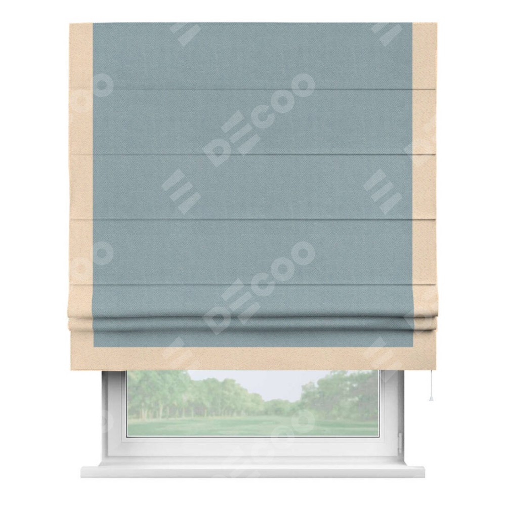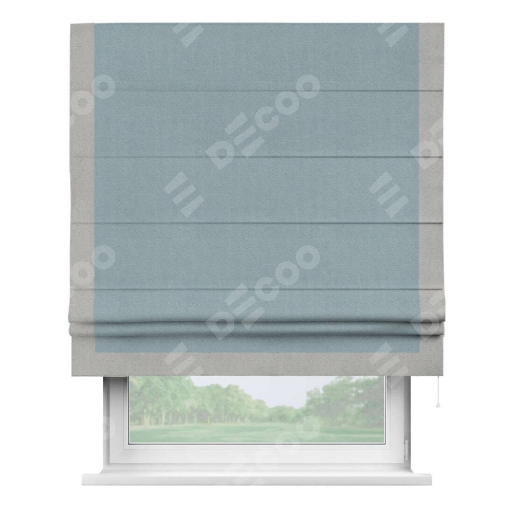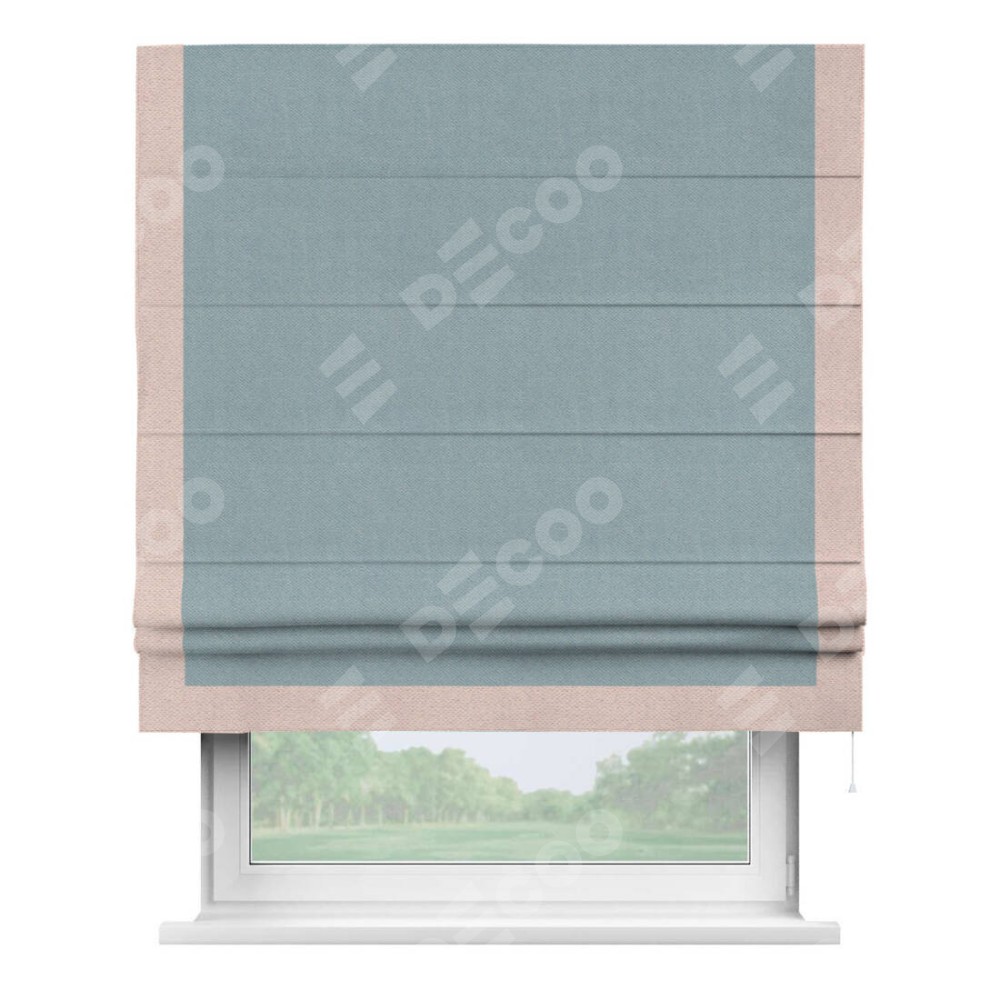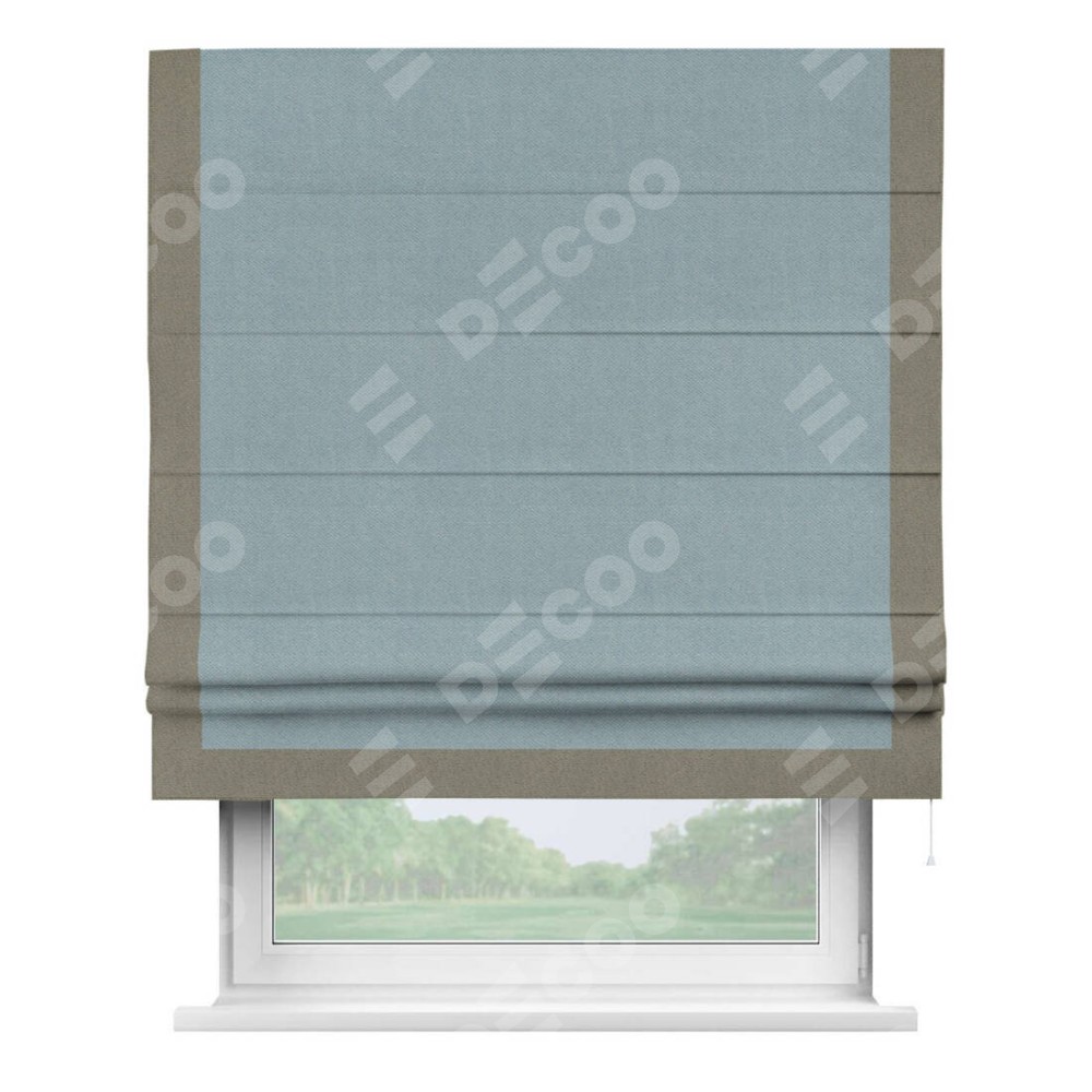 Римская штора «Кортин» с кантом Виктория, для проема, ткань блэкаут с блеском синий