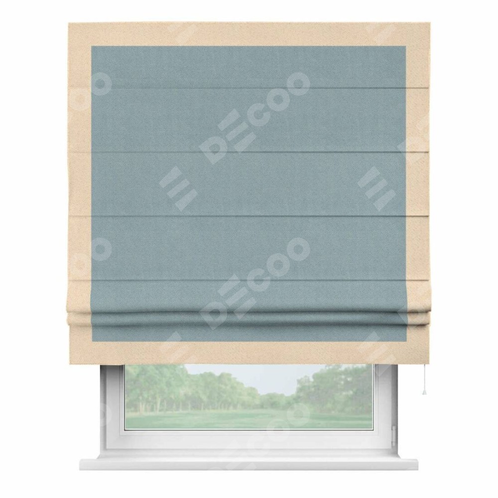 Римская штора «Кортин» с кантом Чесс, для проема, ткань блэкаут с блеском синий