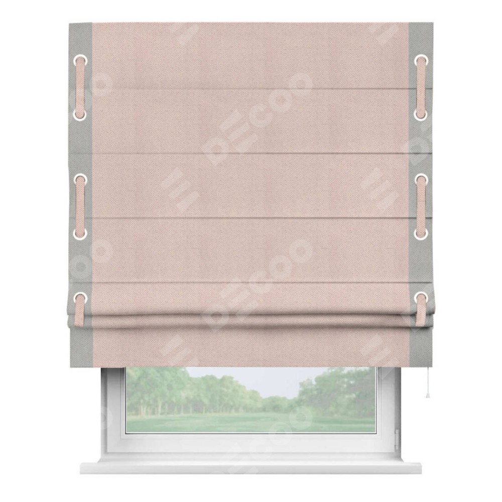 Римская штора «Кортин» с кантом Стрим Дуо (люверсы с пояском), для проема, ткань блэкаут с блеском сиреневый