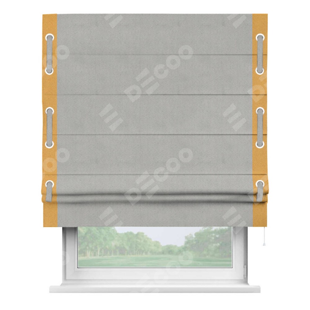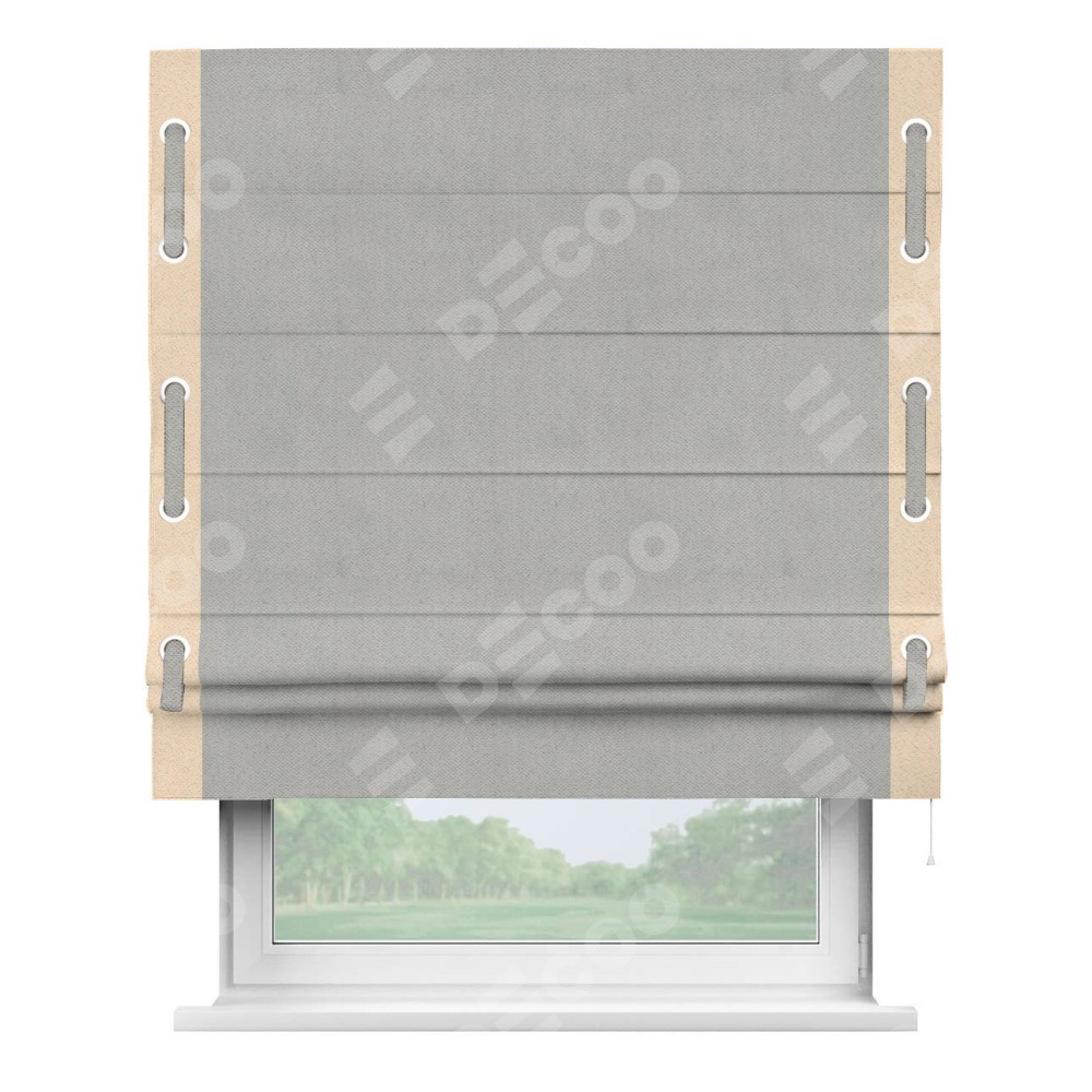 Римская штора «Кортин» с кантом Стрим Дуо (люверсы с пояском), для проема, ткань блэкаут с блеском тёмно-серый