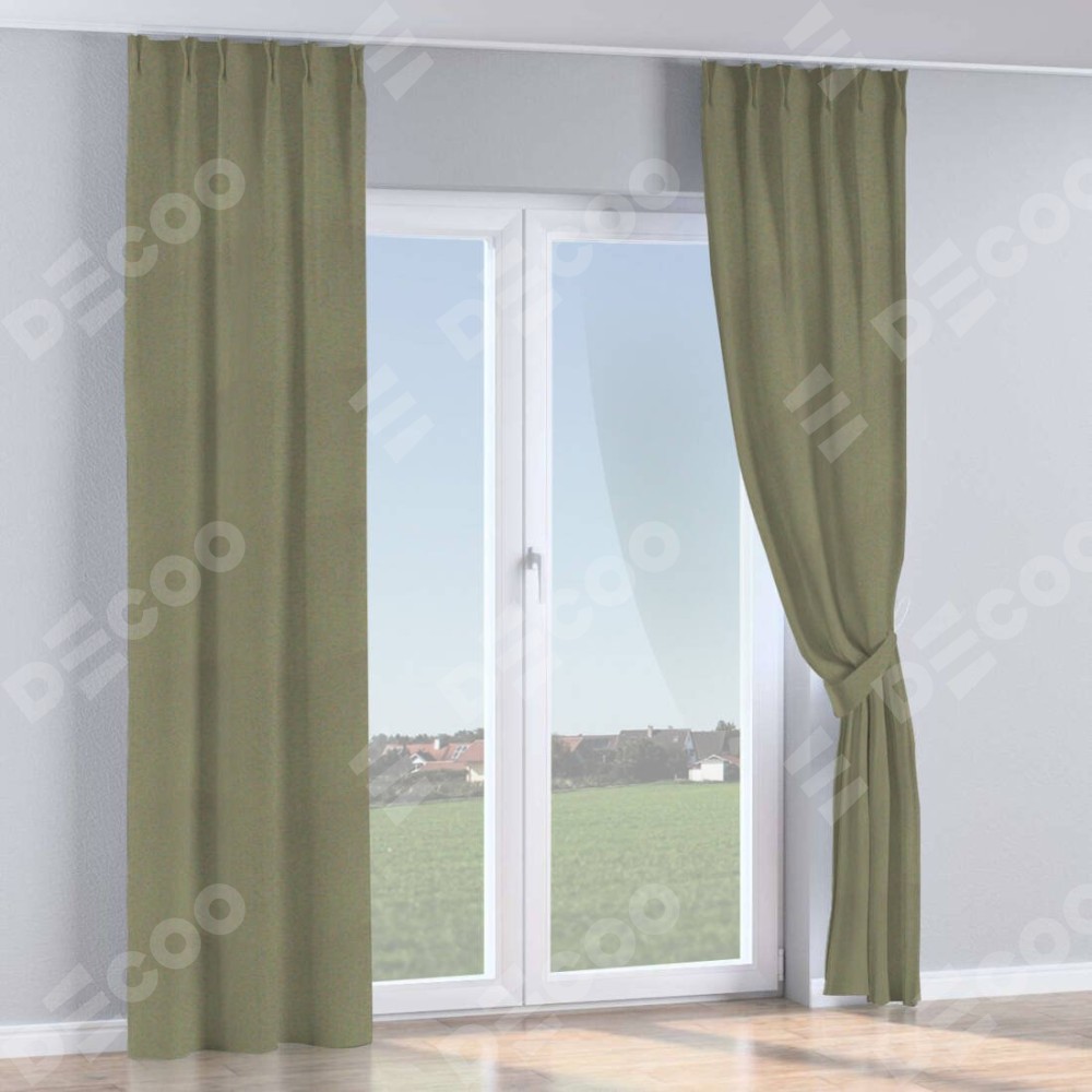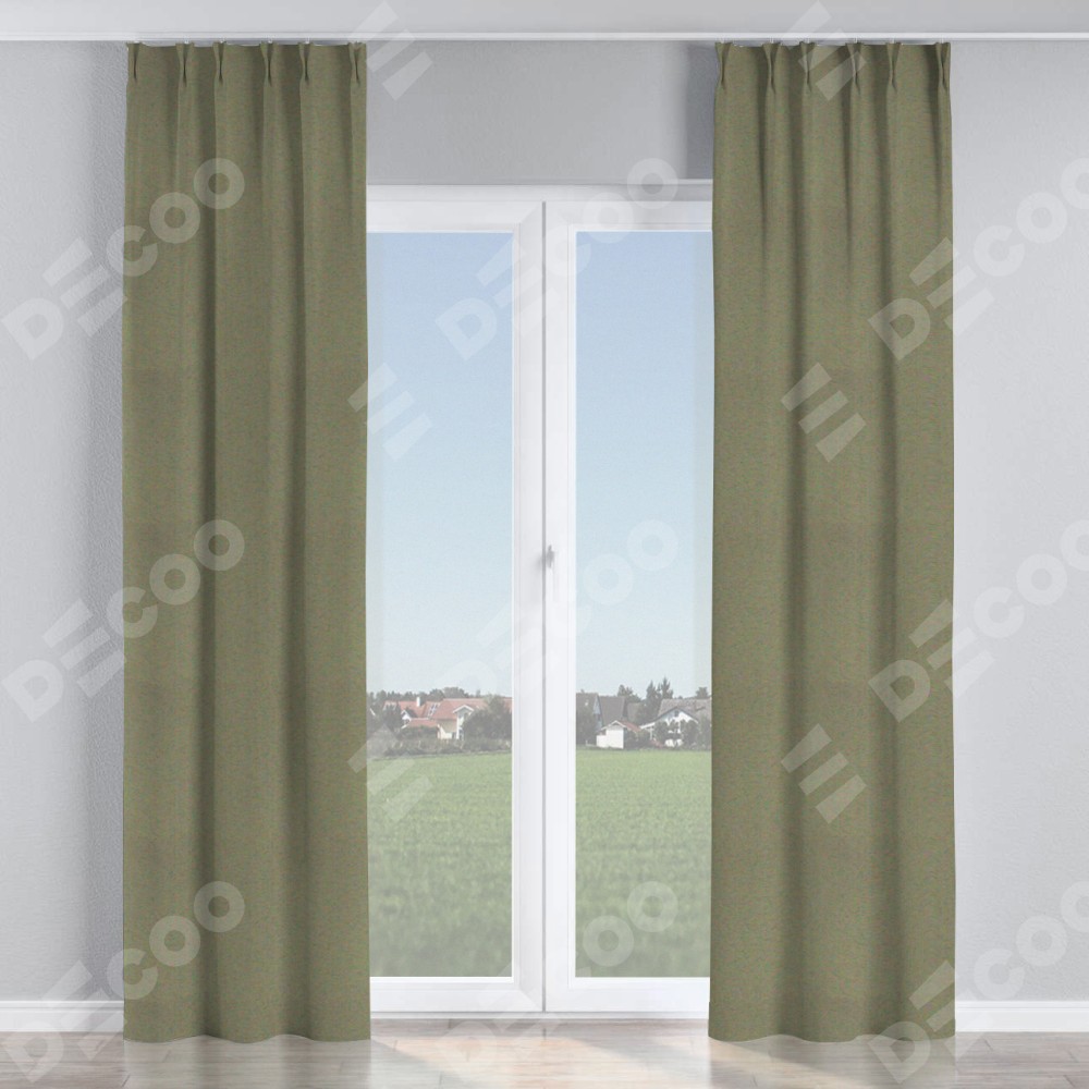 Комплект прямых штор, от производителя «Cortin», пошиты из ткани блэкаут однотонный серо-коричневый, артикул ткани 29568. С изнаночной стороны в верхней части штор пристрачивается шторная лента с декоративными складками «Кустик». Для создания элегантных складок прямые шторы шьются по стандарту с коэффициентом 1:2 (на 100 см. ширины проёма 200 см. ширины ткани).