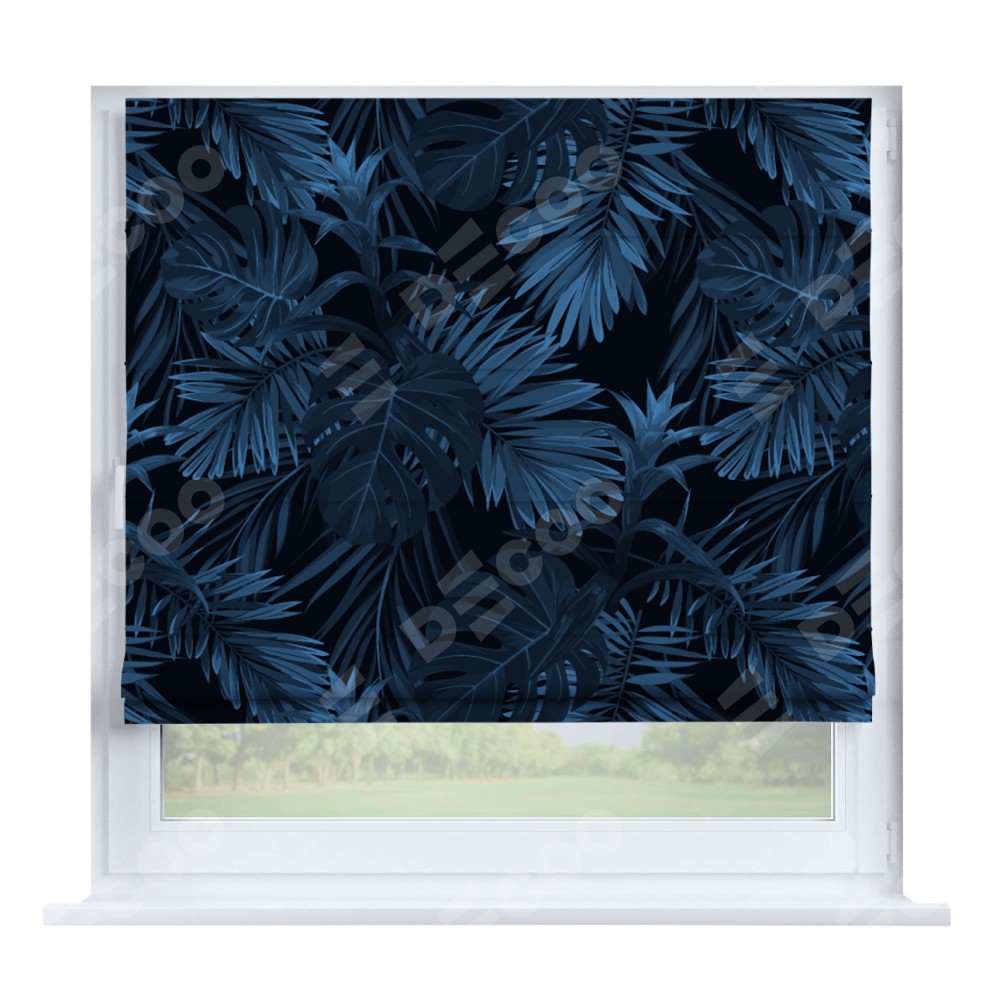 Римская штора производителя «Cortin», устанавливается на створку окна, пошита из ткани блэкаут с нанесением сублимационной печати «Ночные джунгли». Штора шьётся по индивидуальным размерам, для данного типа римской шторы возможная ширина от 35 до 150 см., высота до 250 см.
