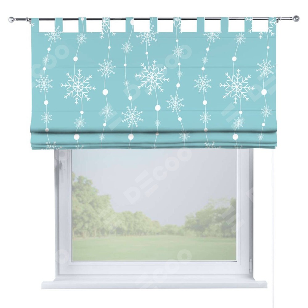 Римская штора производителя «Cortin», используется для проёма, пошита из ткани блэкаут с нанесением сублимационной печати «Гирлянда из снежинок». Данная модель пошита на петлях, комплектуется на выбор круглым карнизом и подходит для монтажа на стену. Римская штора на петлях имеет простую систему регулировки высоты, отличительным преимуществом данной модели является простой способ монтажа. Достаточно повесить ее на трубу и штора готова!