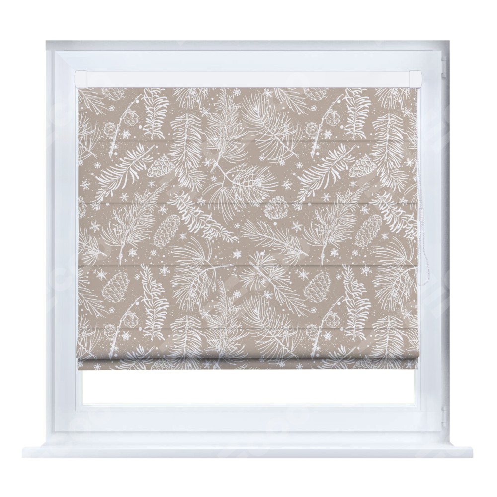 Римская штора производителя «Cortin», устанавливается на створку окна, пошита из ткани блэкаут с нанесением сублимационной печати «Заснеженный лес». Штора шьётся по индивидуальным размерам, для данного типа римской шторы возможная ширина от 35 до 150 см., высота до 250 см.