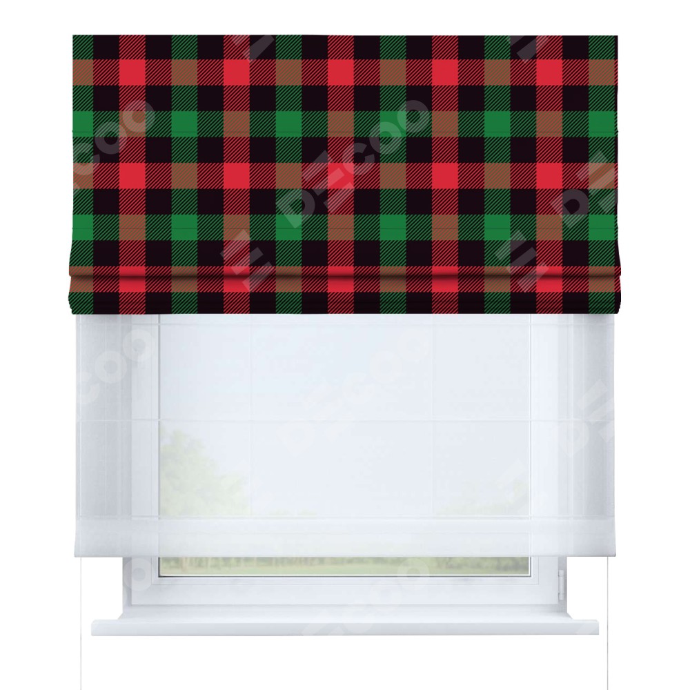 Римская штора день-ночь производителя «Cortin», используется для проёма, пошита из двух полотен, с лицевой блэкаут с нанесением сублимационной печати «Красочная клетка», вторая ткань тюль (по стандарту комплектуется тюль белого цвета артикул V-01). Имеет универсальный механизм и подходит для монтажа: на потолок, на стену и в нишу.