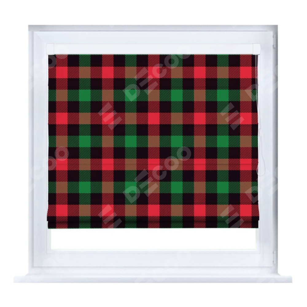 Римская штора производителя «Cortin», устанавливается на створку окна, пошита из ткани блэкаут с нанесением сублимационной печати «Красочная клетка». Штора шьётся по индивидуальным размерам, для данного типа римской шторы возможная ширина от 35 до 150 см., высота до 250 см.