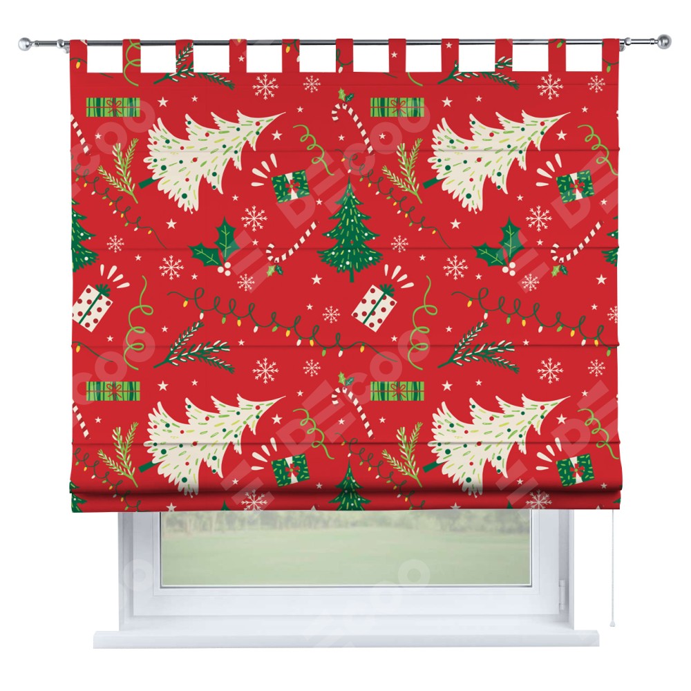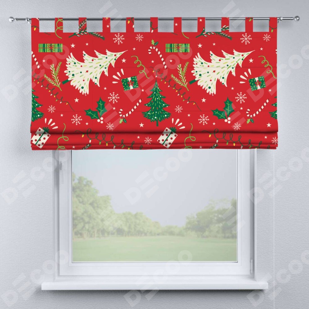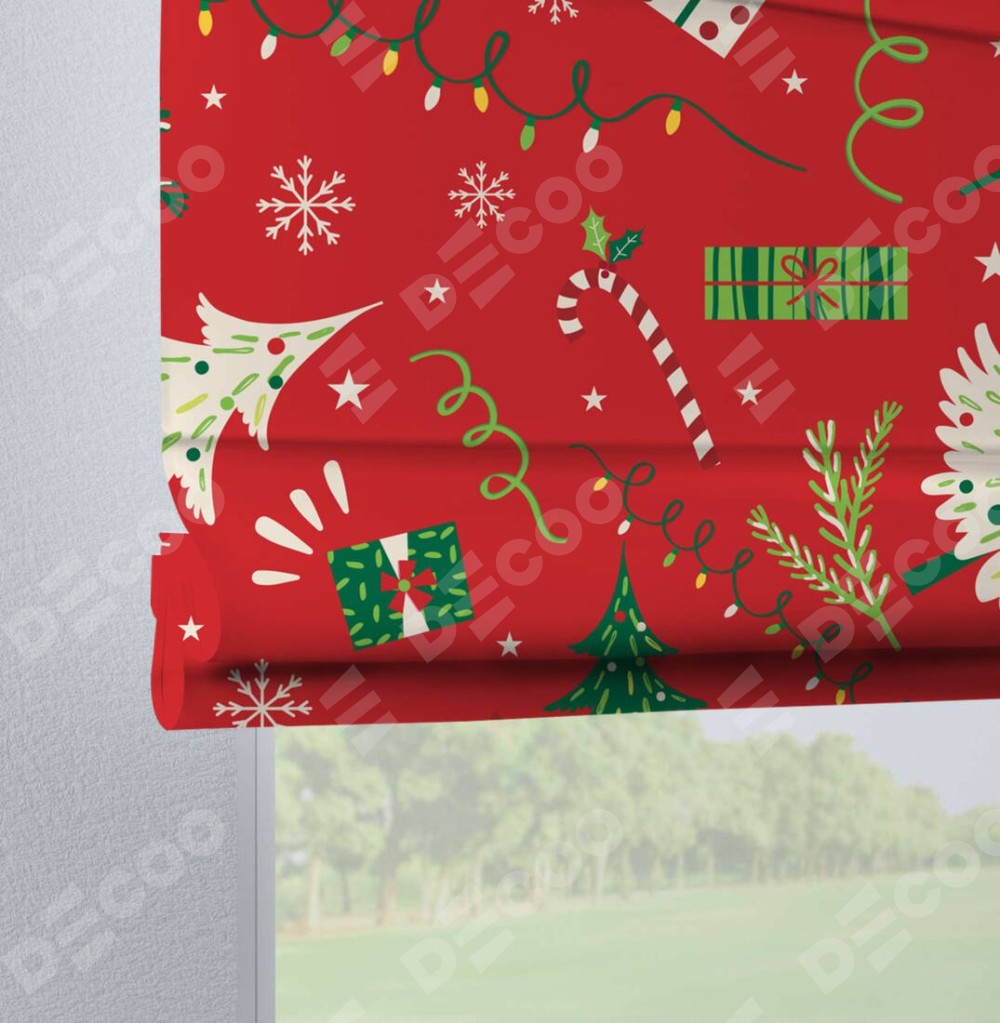Римская штора производителя «Cortin», используется для проёма, пошита из ткани блэкаут с нанесением сублимационной печати «Новогодние подарки». Данная модель пошита на петлях, комплектуется на выбор круглым карнизом и подходит для монтажа на стену. Римская штора на петлях имеет простую систему регулировки высоты, отличительным преимуществом данной модели является простой способ монтажа. Достаточно повесить ее на трубу и штора готова!